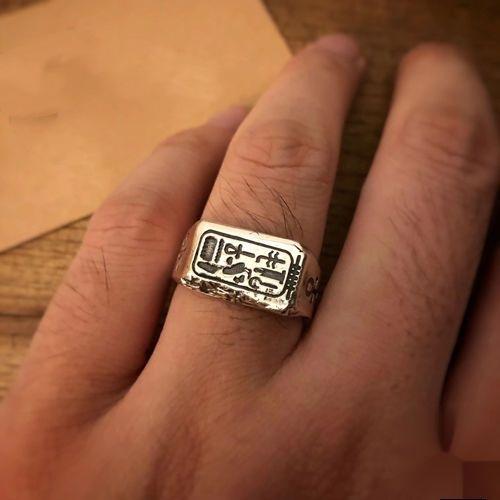 复古埃及荷鲁斯永生图腾印章戒指男款精致高级感做旧工艺开口指环