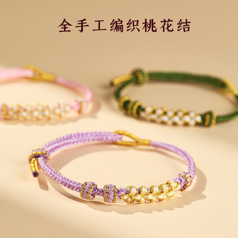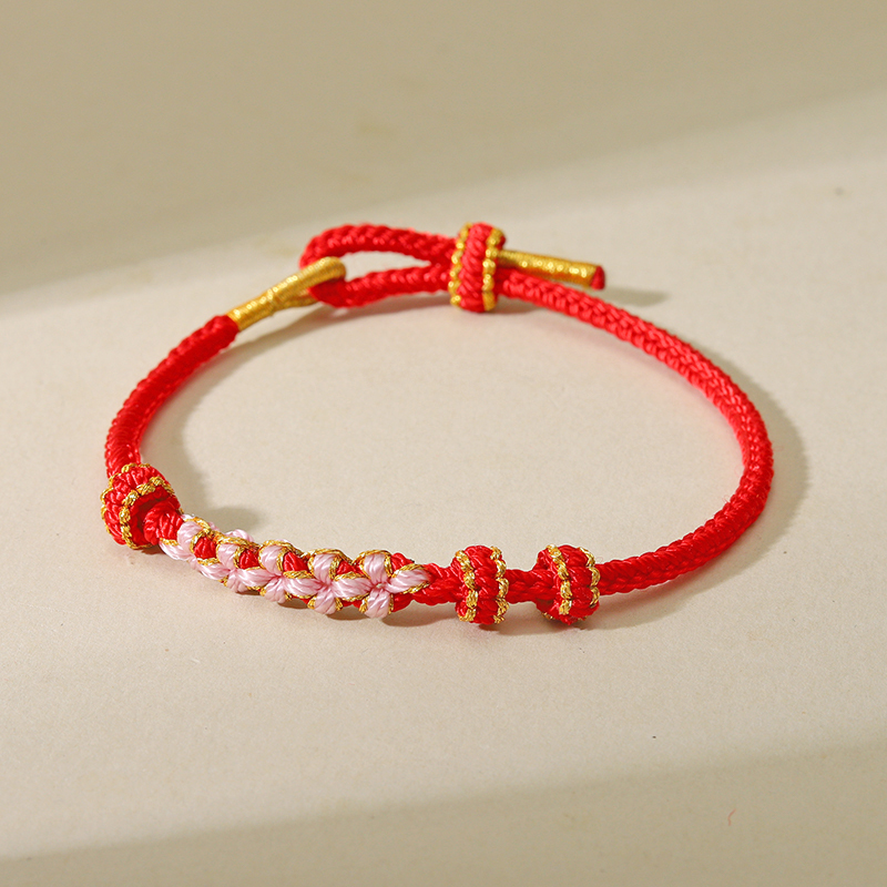桃花结红绳手链手工可DIY可串珠穿黄金配件半成品手绳男女本命年