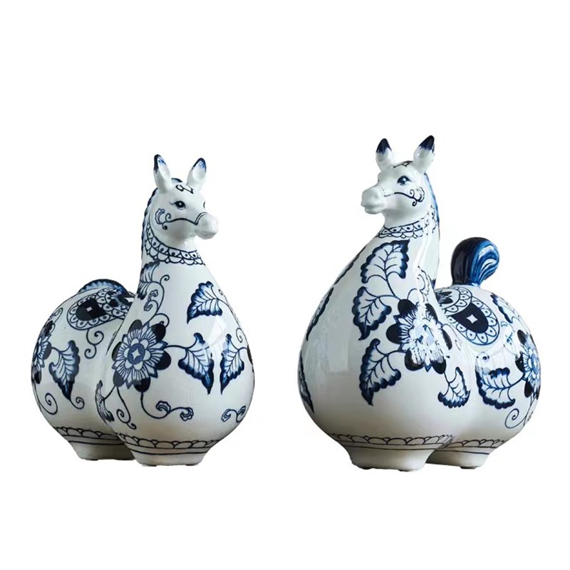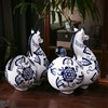 新中式青花手绘陶瓷马摆件工艺品马到G成功客厅电视柜家居装饰摆