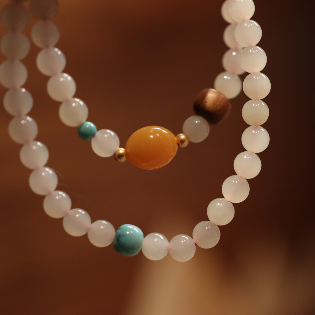 天然6MM和田玉藕粉手链女蜜蜡老檀木多圈手串简约饰品个性礼物