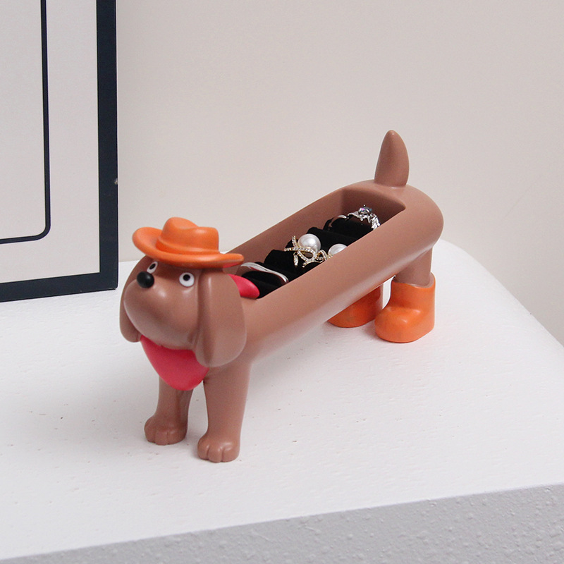 可爱腊肠狗戒指托摆件耳环耳钉首饰饰品收纳盒海绵戒托送女生