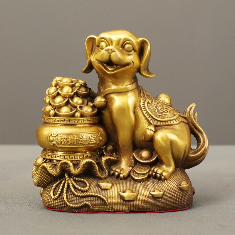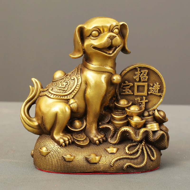 铜狗摆件聚宝盆金钱狗十二生肖狗补西北缺角家居客厅招财吉祥物