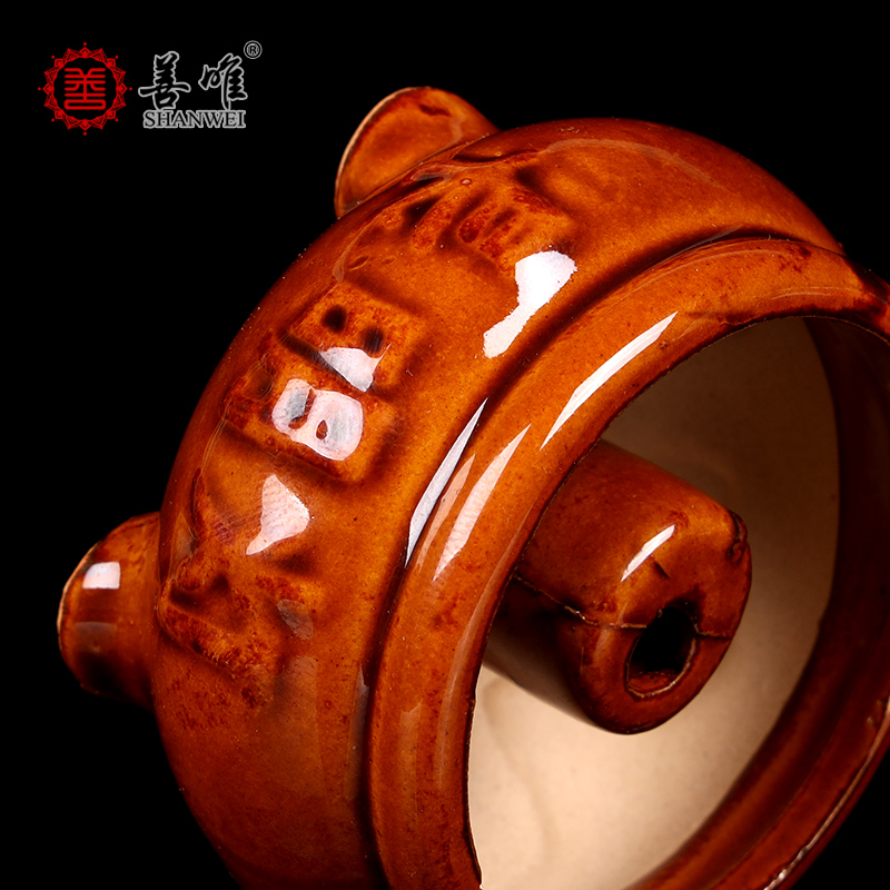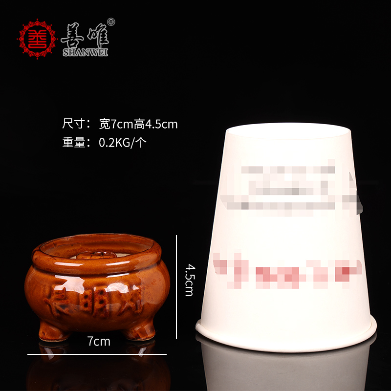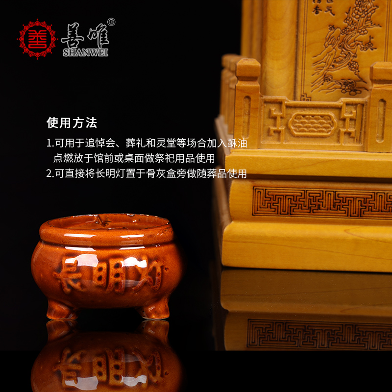 善唯 随葬品陶瓷长明灯摆件鼓型圆形酥油灯殡葬用品墓地安葬下葬