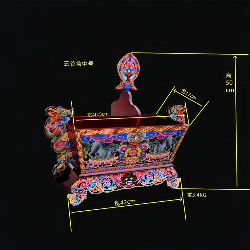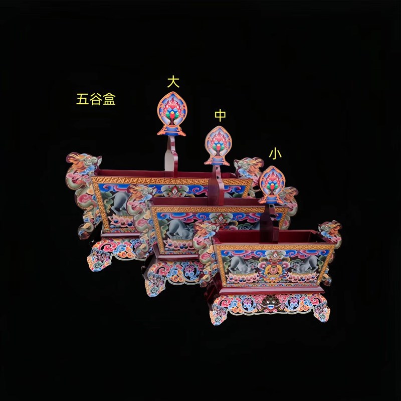 彩绘切玛盒民族风藏传彩绘五谷盒摆件藏式装饰品藏U族用品吉祥图