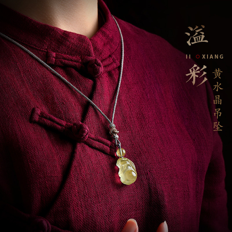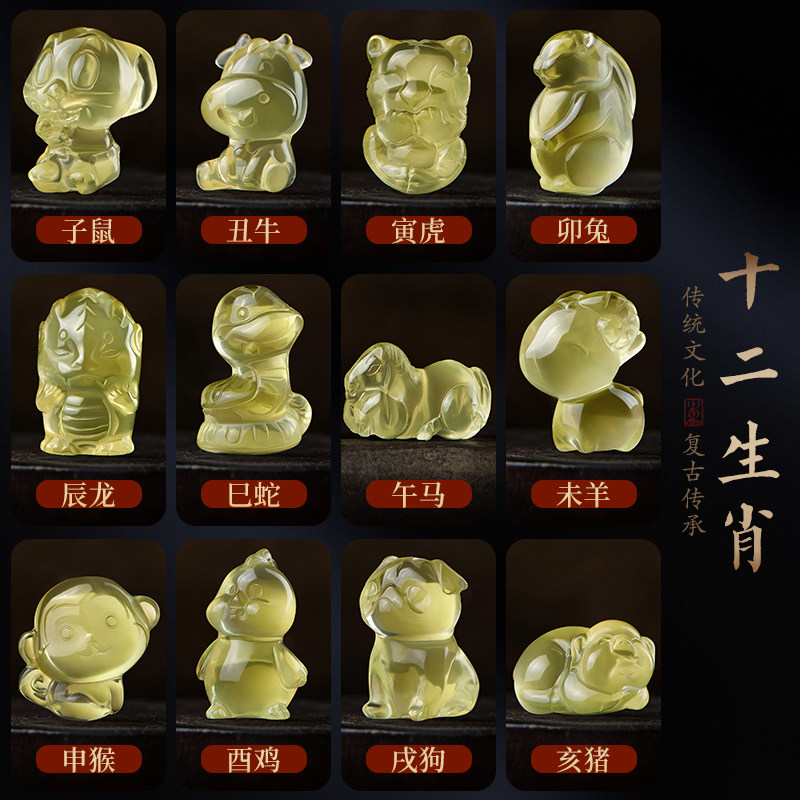 十二生肖黄水晶吊坠男女2025年属龙兔狗羊猴挂件毛衣链护身符项链