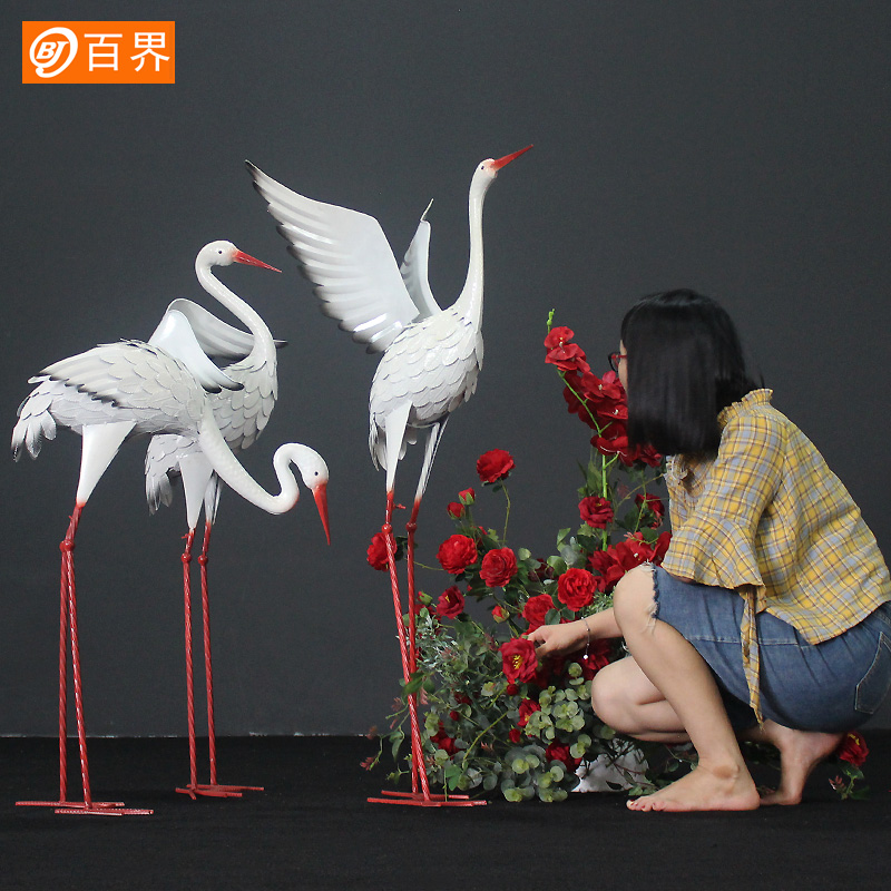 户外仿真白鹭鹤铁艺花园景观装饰品森系主题婚礼t台装饰舞台摆件