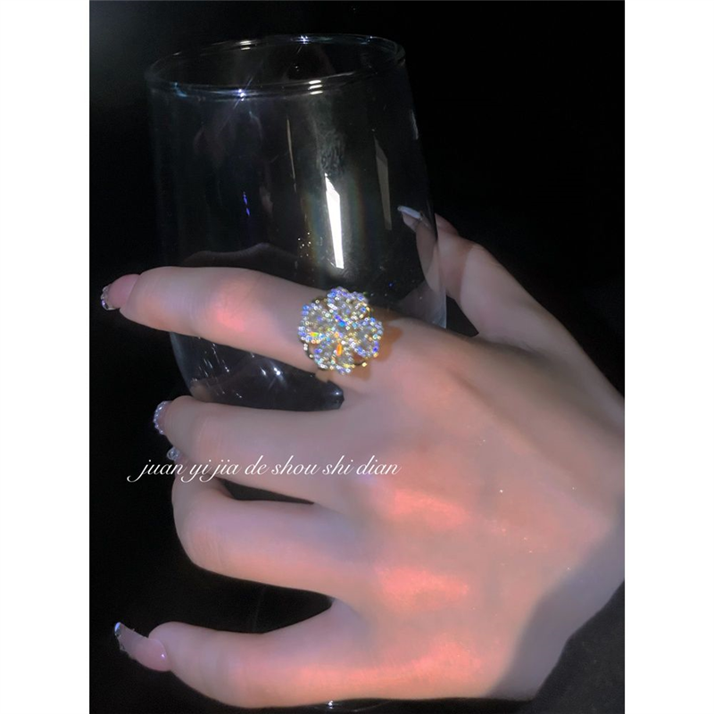 可旋转戒指轻奢高级旋转式满钻花朵开口时尚个旋转小众设计戒指