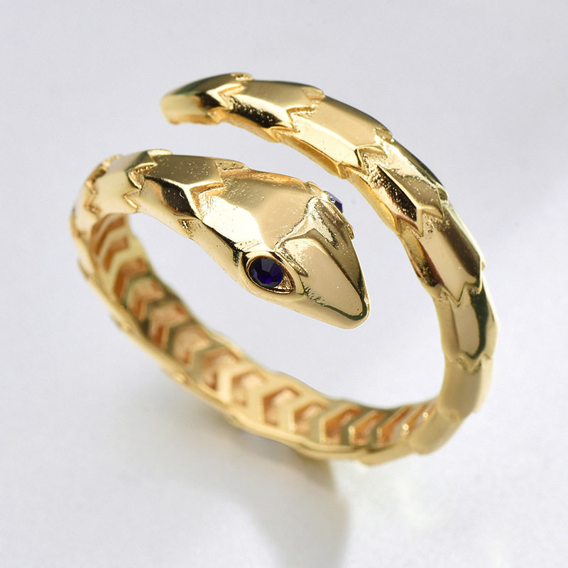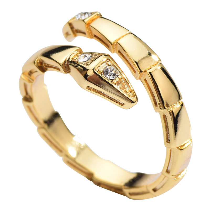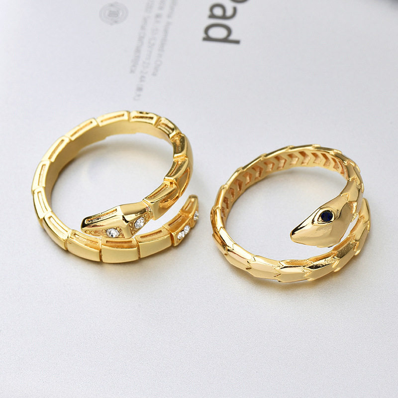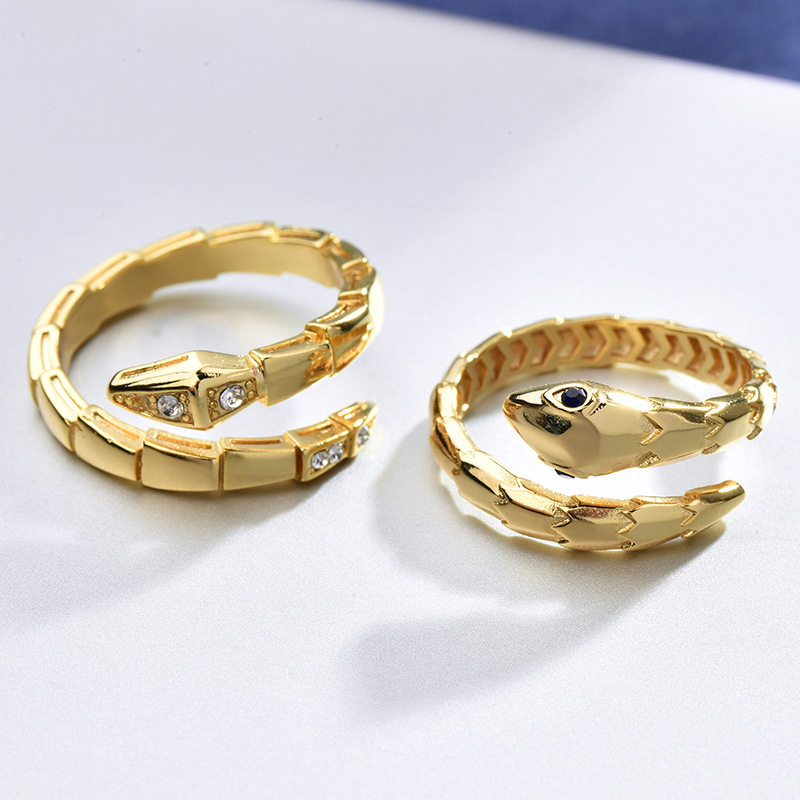 2025蛇年K金首尾钻蛇形开口戒指镶嵌锆石单圈三圈满钻款蛇形指环