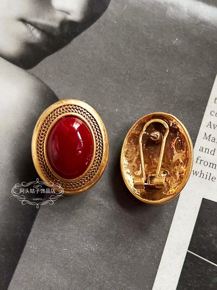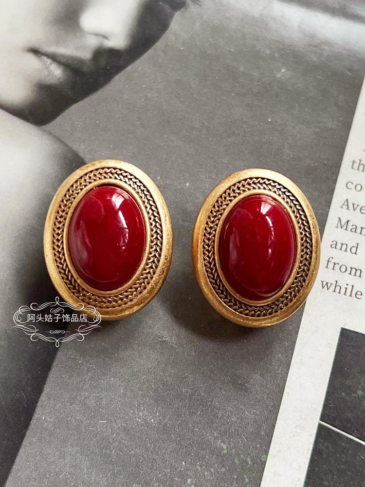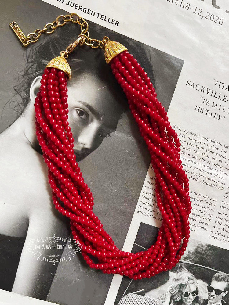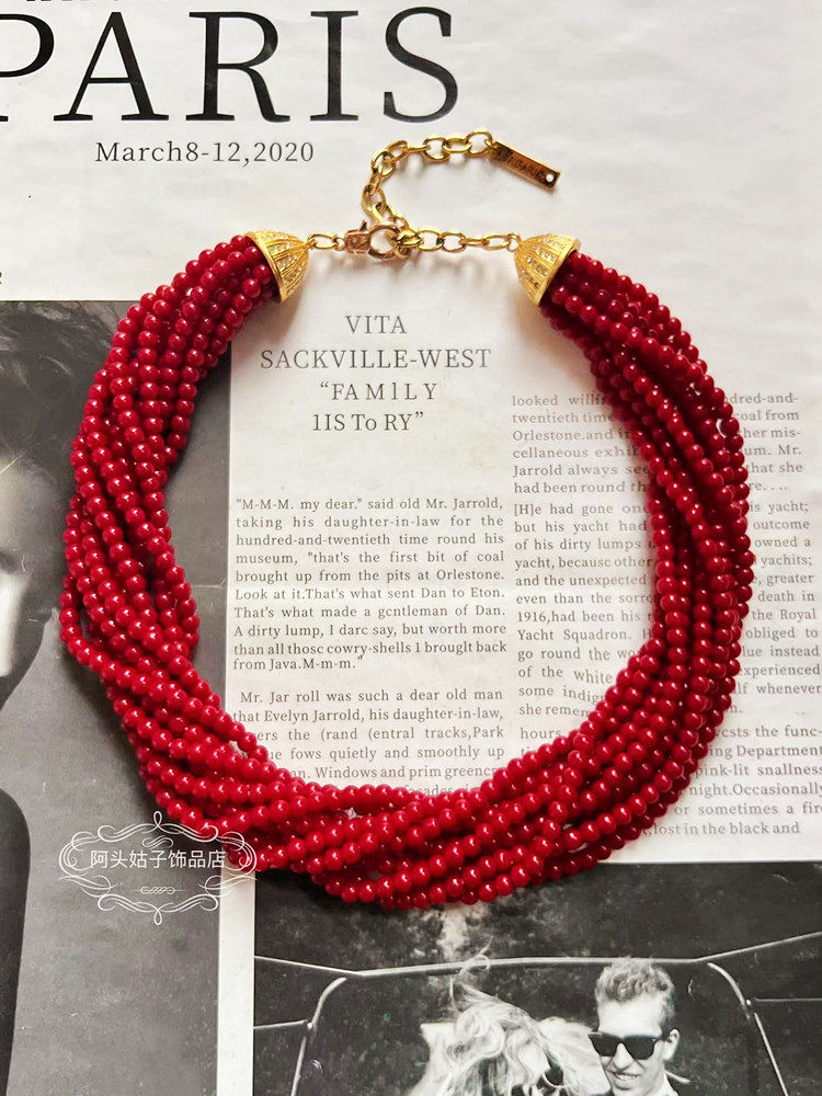 欧美宫廷风中古vintage复古气质红色串珠缠绕多层项链玛瑙耳环女
