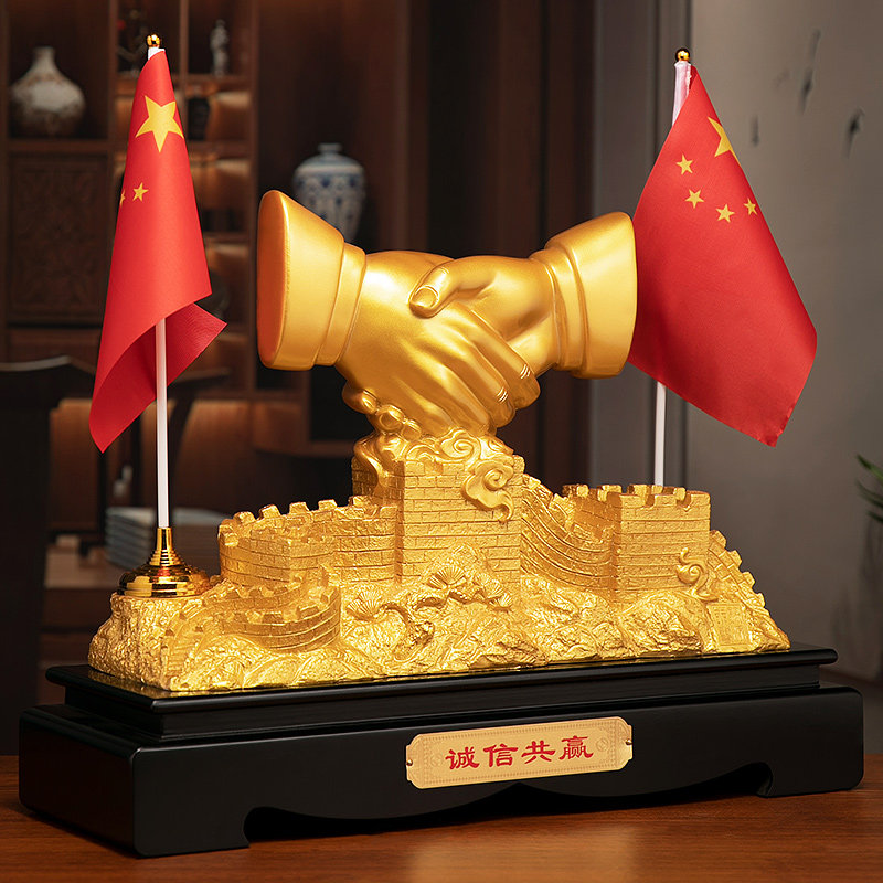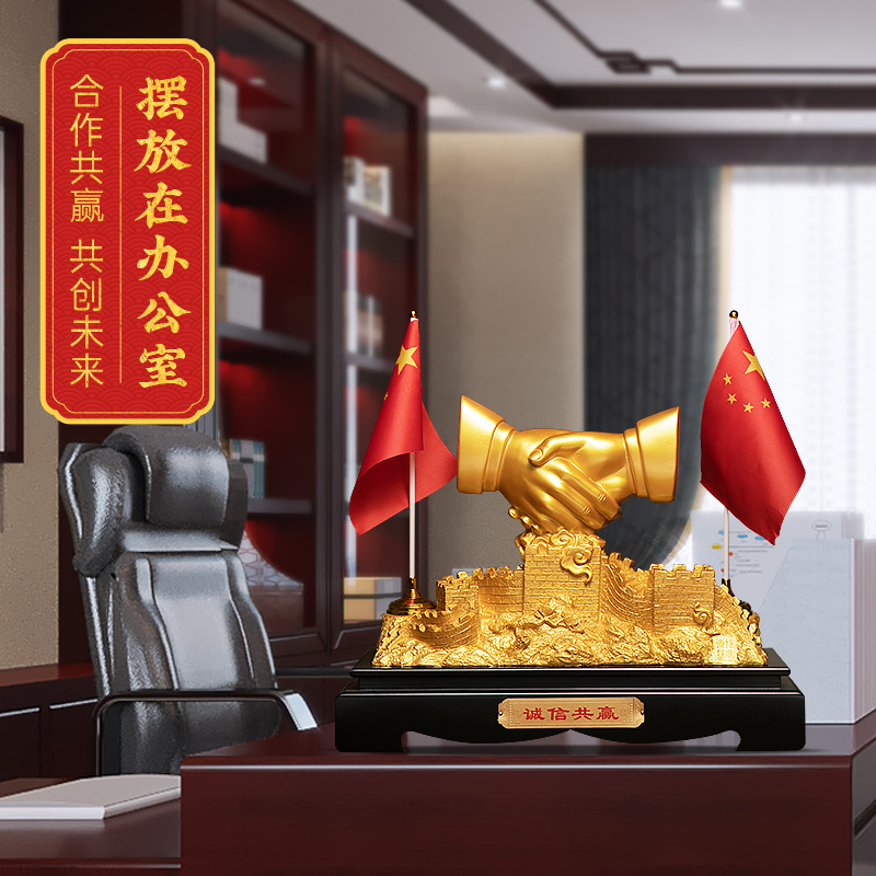 合作共赢握手摆件老板办公室桌面装饰工艺品公司开业X乔迁商务礼
