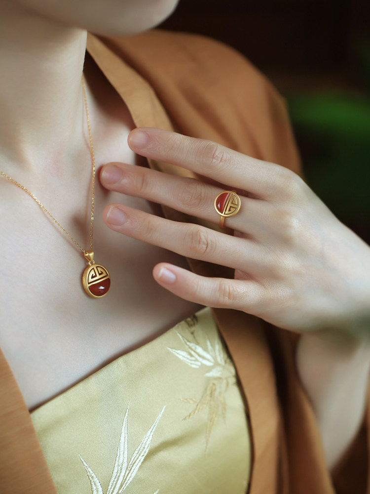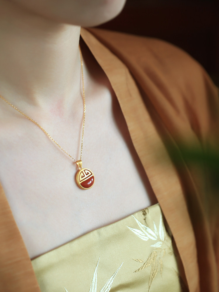 小银匠天然南红纯银平安扣吊坠女新中式国风红色红玛瑙锁骨链项链