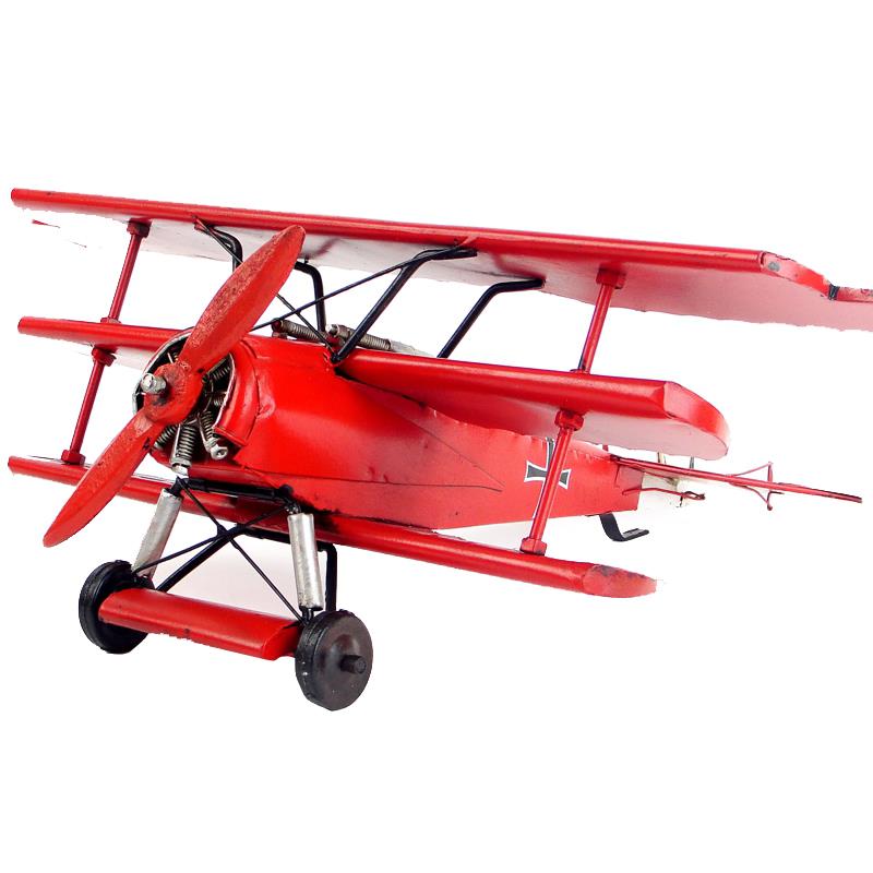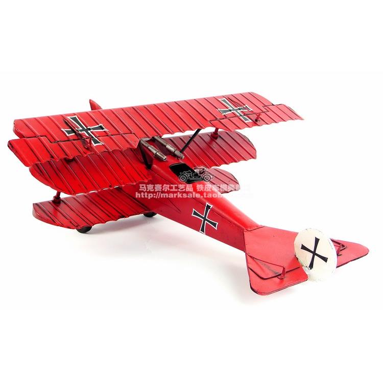 铁皮仿古飞机模型 一战德国红男爵战斗机工艺品装饰摆件道具礼物