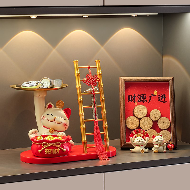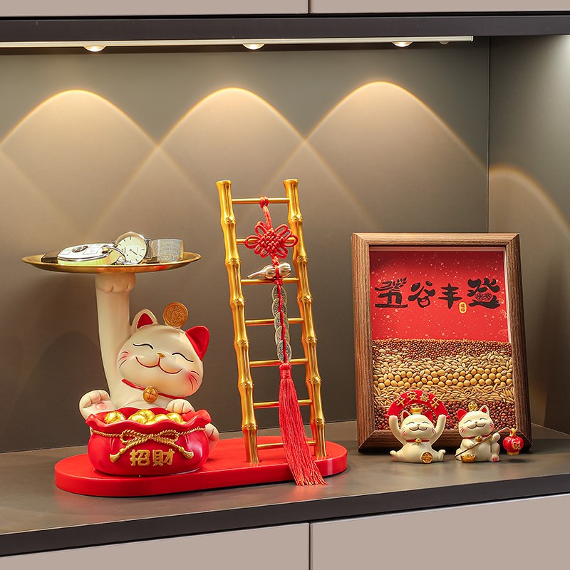 招财猫入户玄关钥匙收纳摆件门口鞋柜置物架客厅欢迎回家装饰品