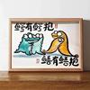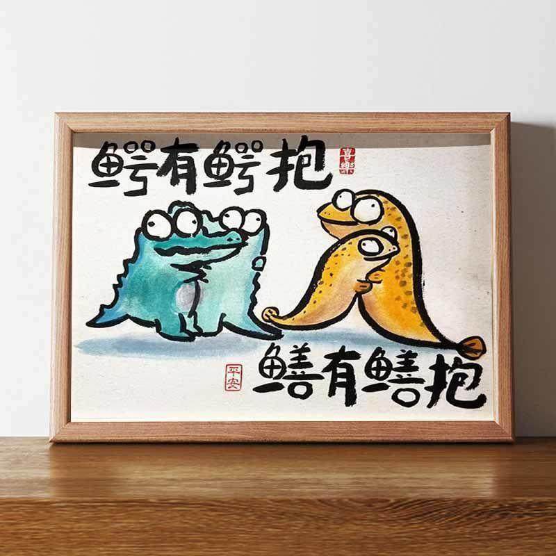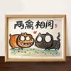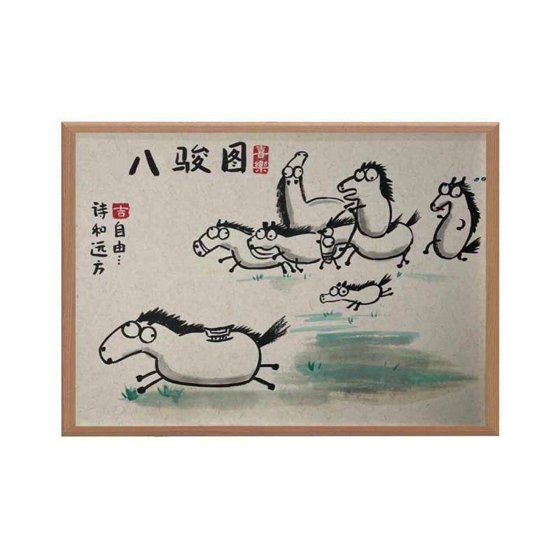 八骏图搞笑挂画恶搞中式挂画书法作品相框摆台两禽相悦摆件装饰画