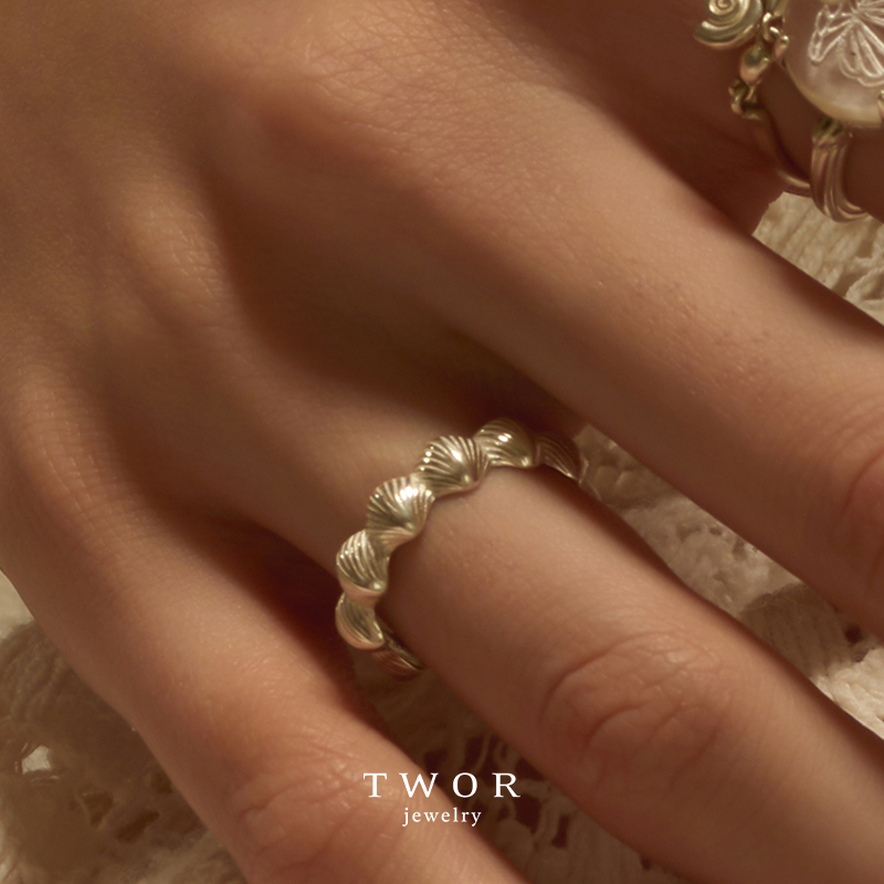 TWOR/沙滩拾贝s925银小贝壳叠加戒指度假叠戴戒指女小众设计独特