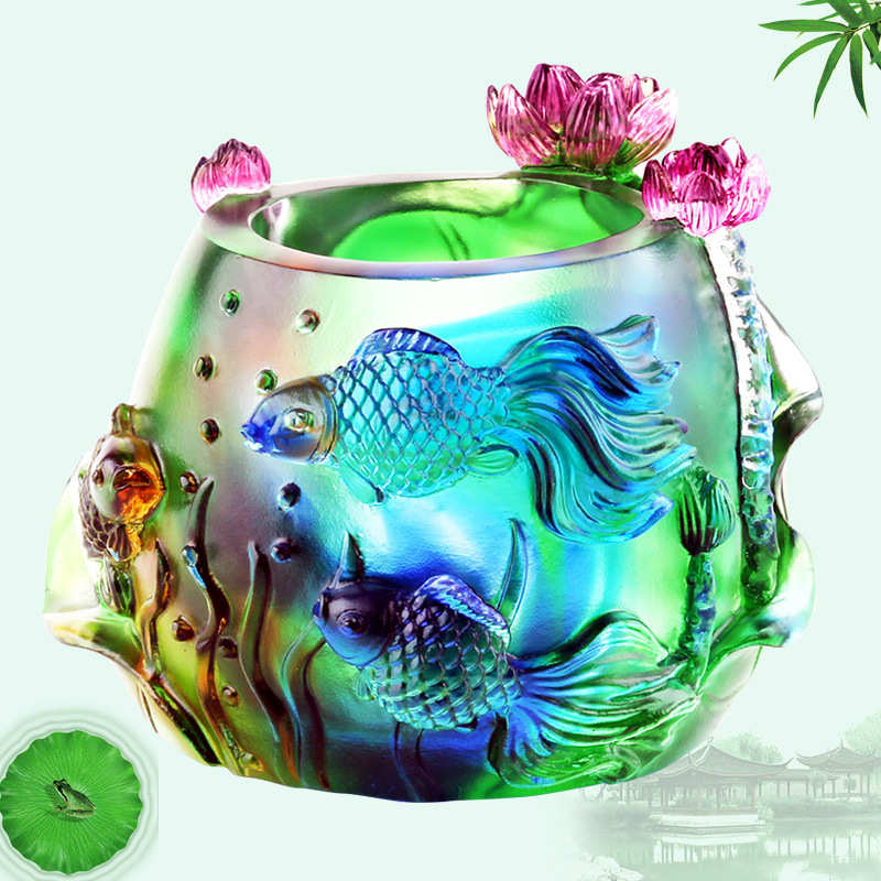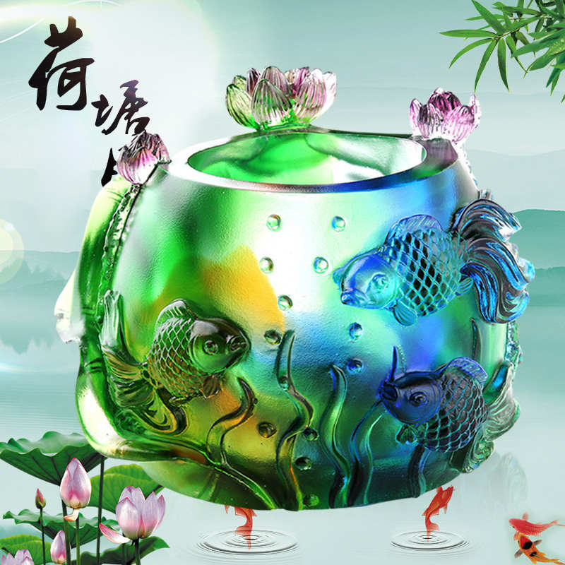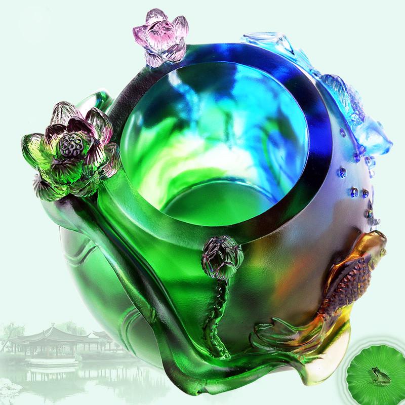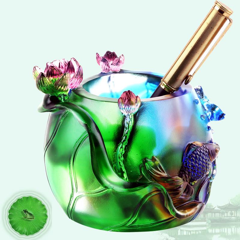 淄博琉璃荷花笔筒办公室桌面装饰摆件家居客厅工艺品创意实用装饰