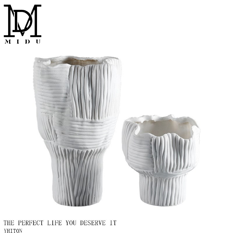 现代简约白色树脂插花花瓶家居客厅装饰品摆件酒店样板房大号花器