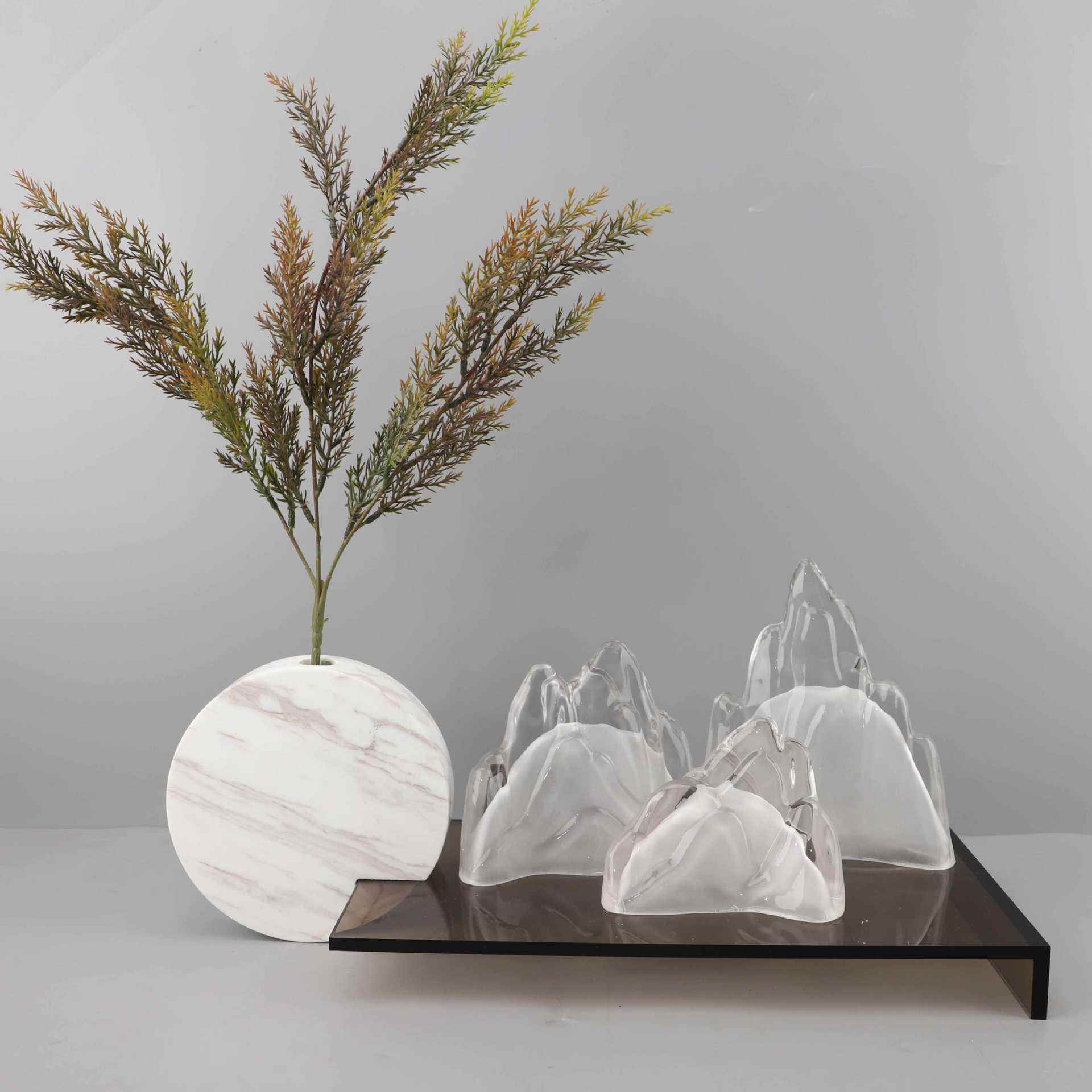 新中式样房板间客厅玄店关083柜酒艺术假品摆件大理石托盘山软装