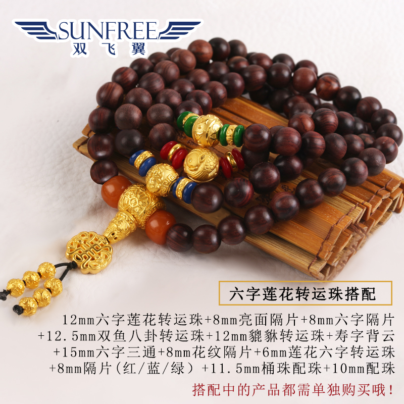 黄金六字真言莲花转运珠3D硬足金999大明咒男女款手串项链路路通