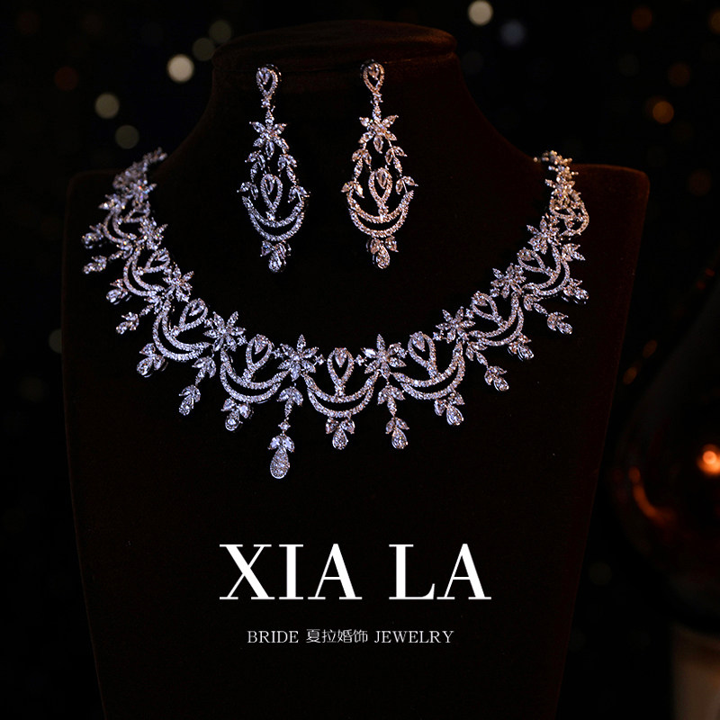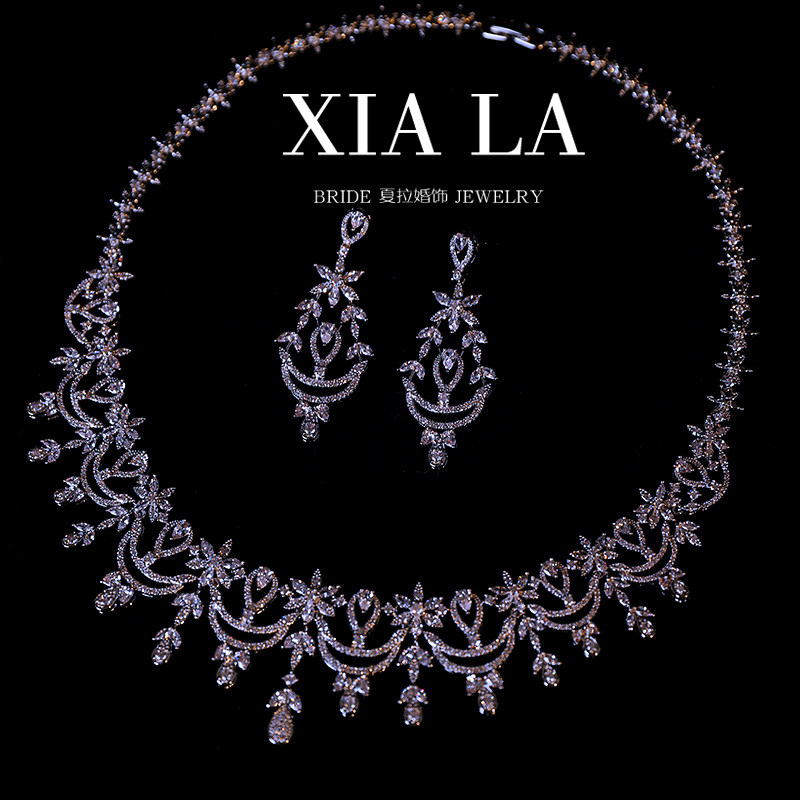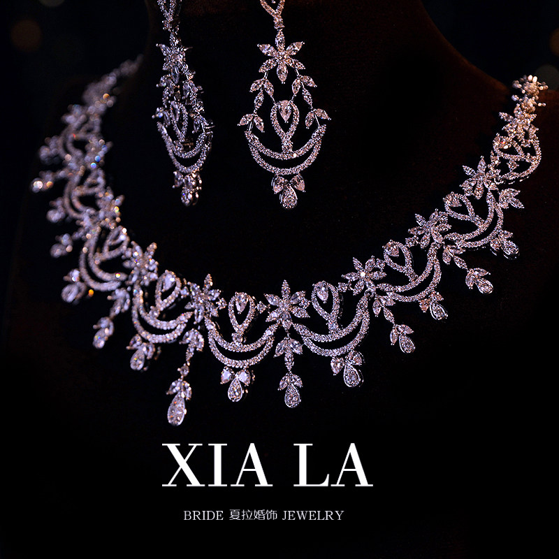 夏拉新款奢华闪钻多层复古欧式新娘项链婚纱颈链耳饰晚宴配饰套装