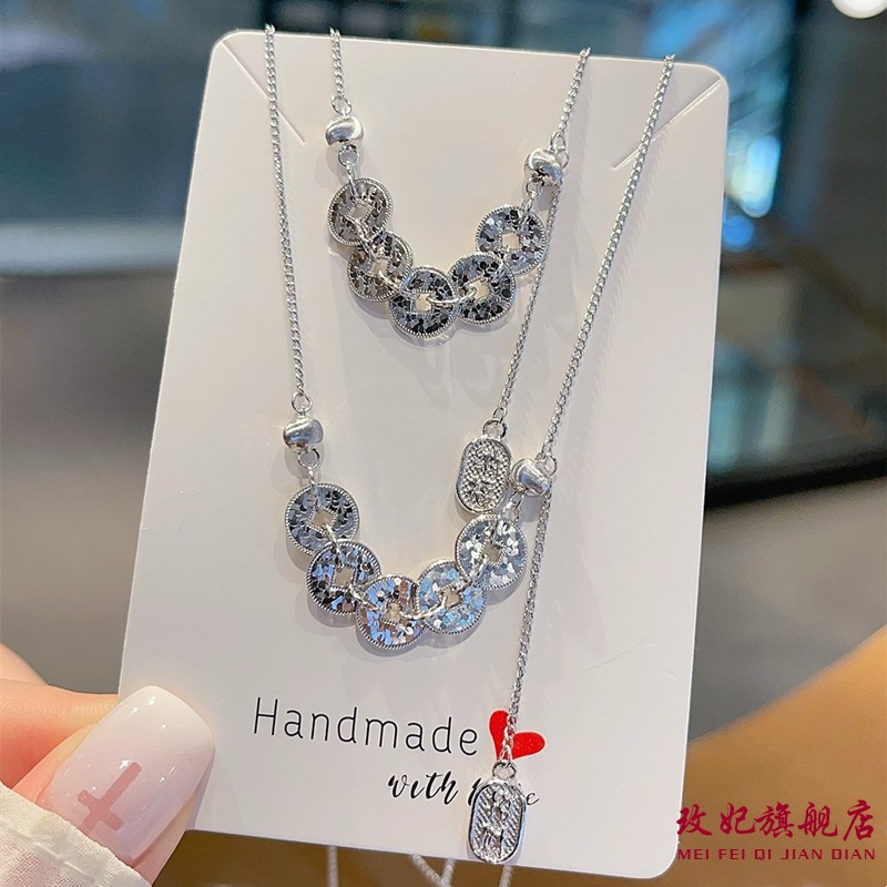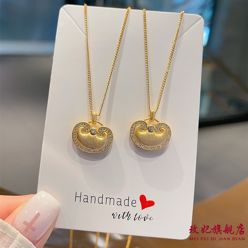 玫妃黄金同款五帝钱币碎冰冰纯银项链招财长命锁葫芦锁骨链送女友