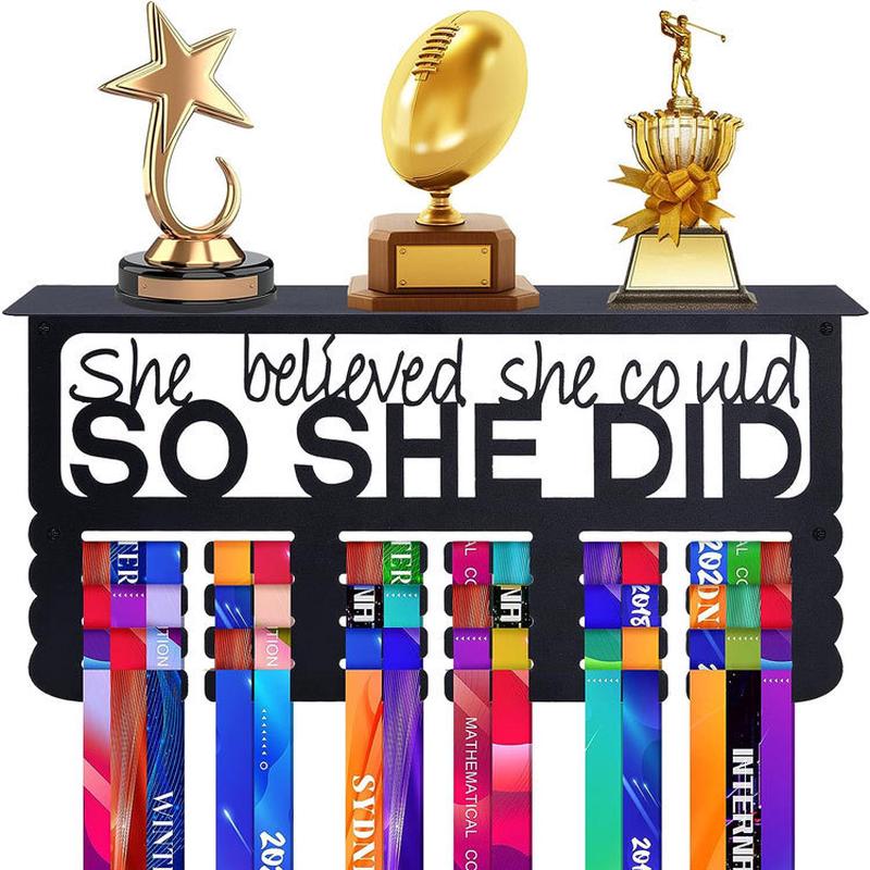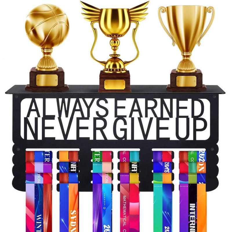 金属收纳挂钩奖杯展示架奖牌奖牌挂架铁艺置物架来图制作黑色
