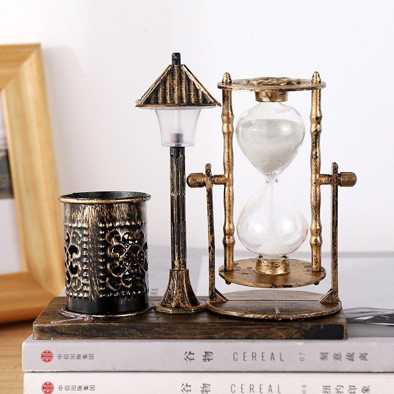创意学生礼品仿古流砂路灯笔筒z 学生礼品白色沙漏双色小夜灯摆件