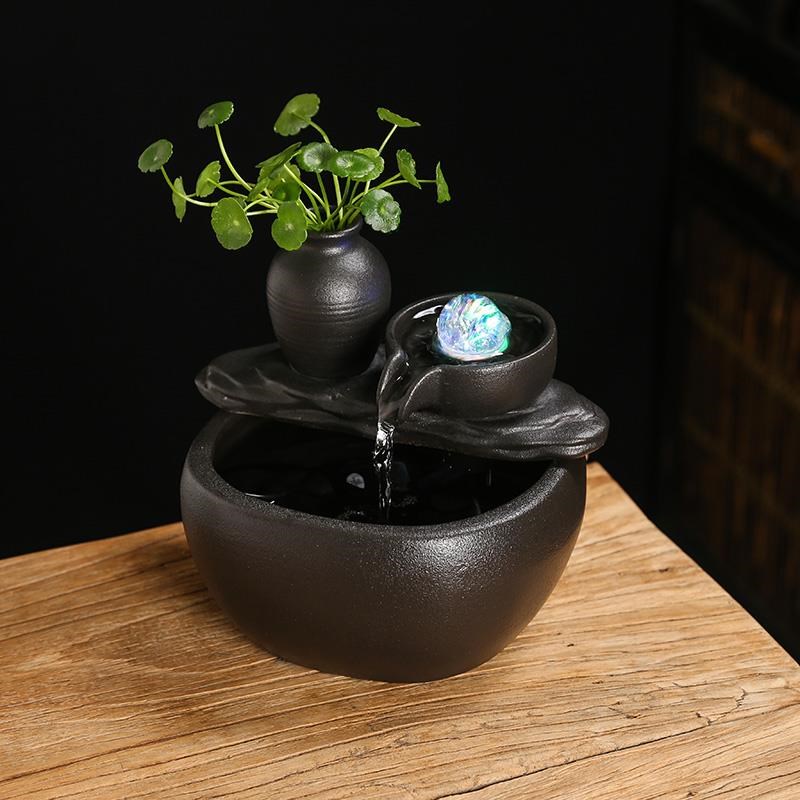 礼品转运摆件陶瓷办公室鱼缸喷泉循环水流水客厅小型桌面招财