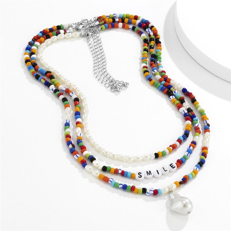 Bohemian Style Abnormal Pearl Letter Multilayered Necklace f