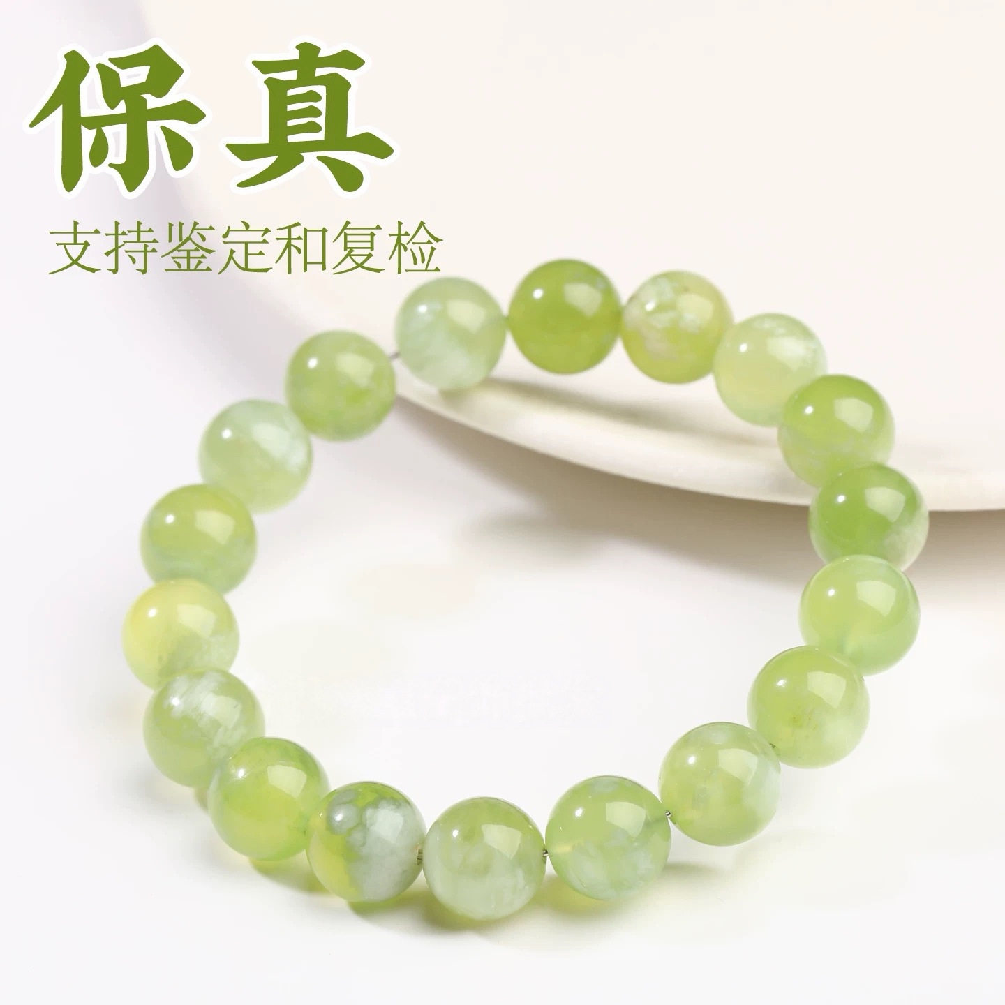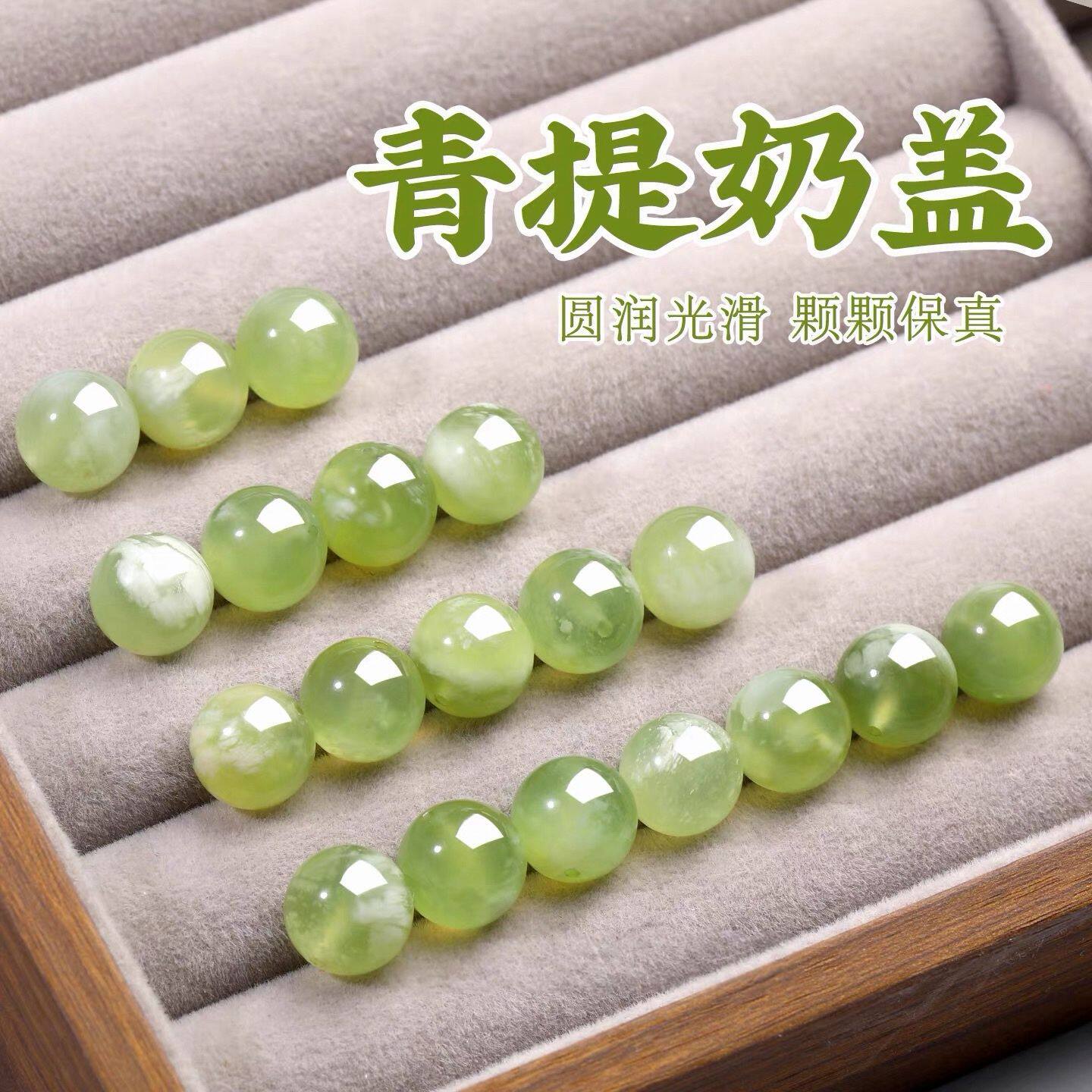 天然青提奶盖岫玉散珠子手链单颗diy岫岩玉绿色玉石串珠手串配珠
