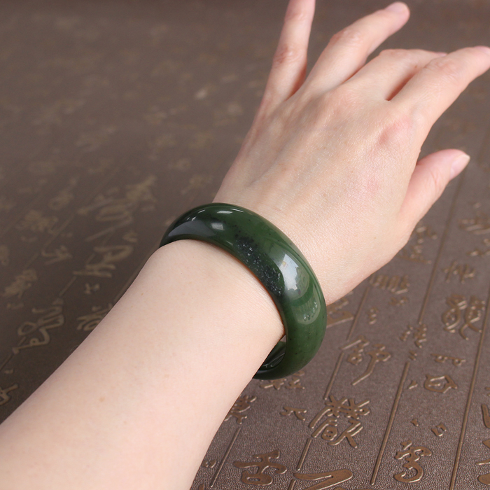 N54.9高颜值碧玉籽料手镯玉镯 有原皮 和田玉朕®开仓