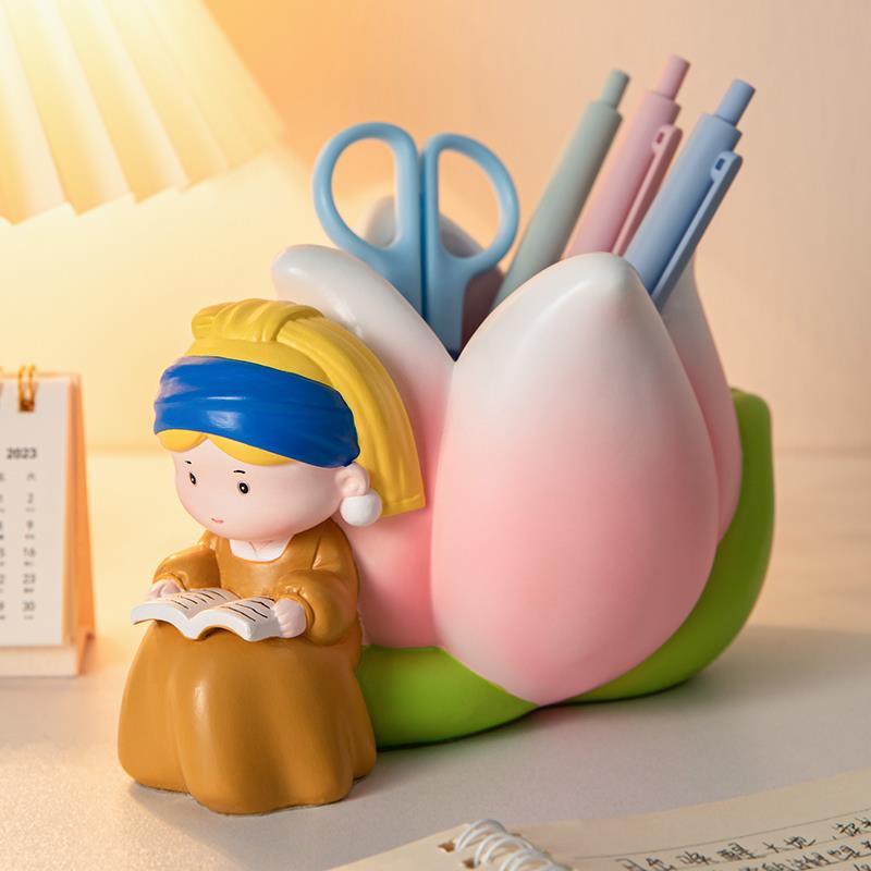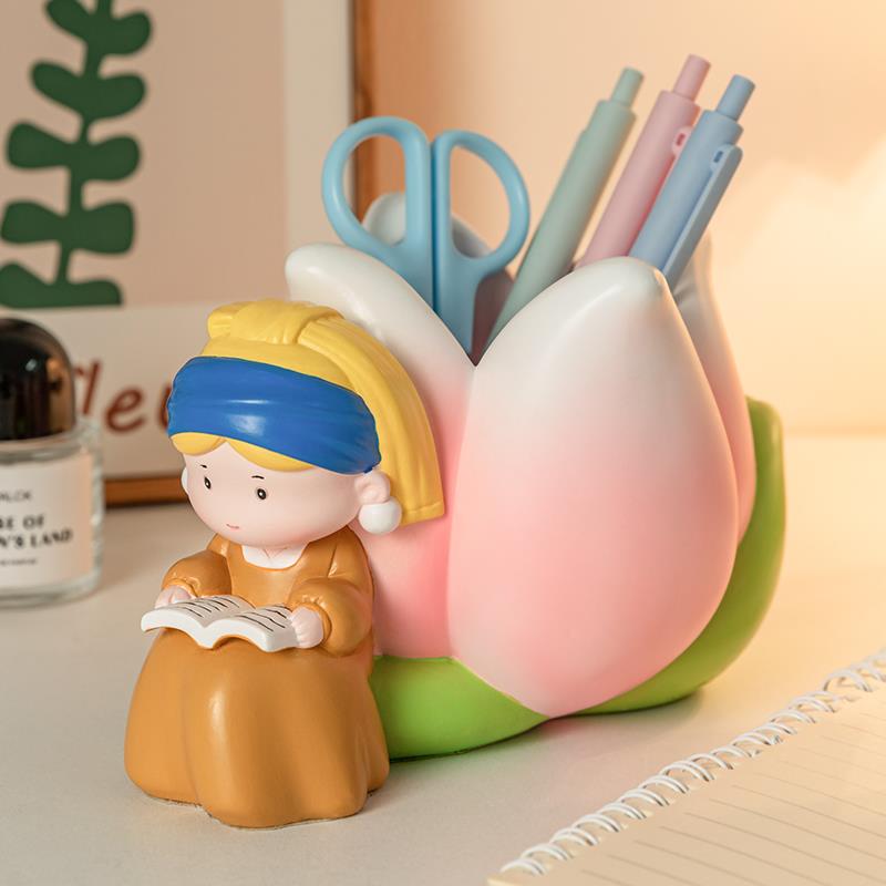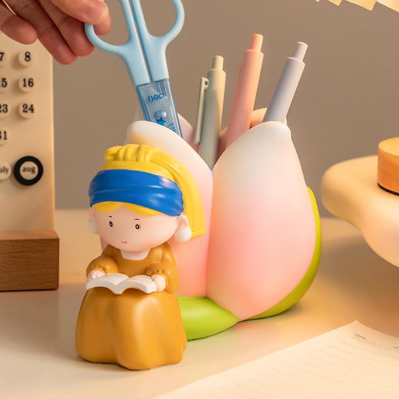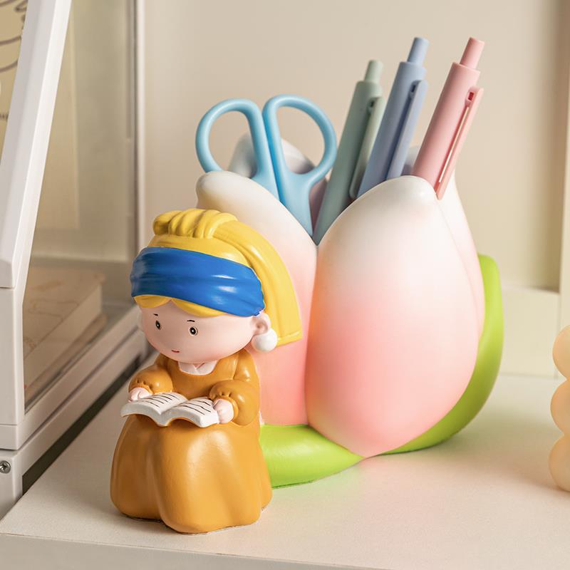 可爱珍珠耳环少女笔筒摆件办公室桌面装饰品创意实用生日礼物女生