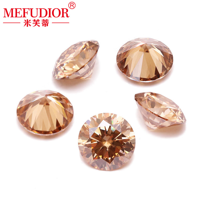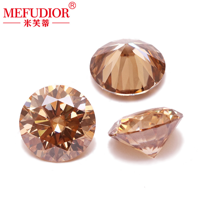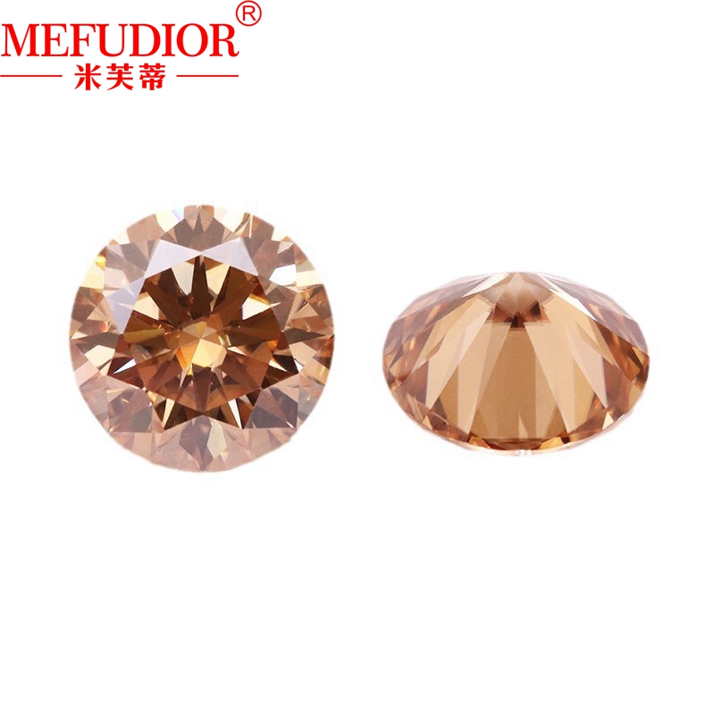 香槟色原色彩色圆形莫桑石裸石送GRA证书黑卡腰码厂家现货批发