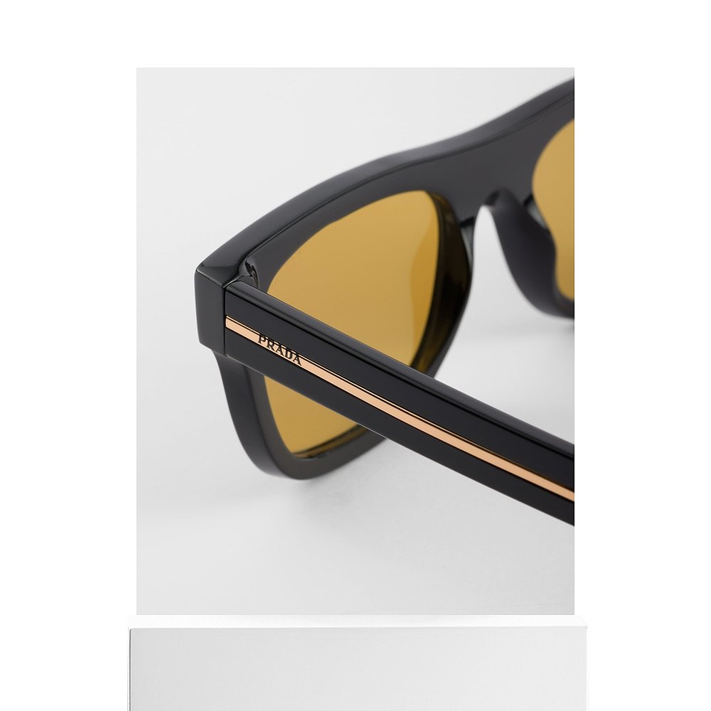 自营欧洲直邮Prada普拉达 男士蜂蜜色醋酸纤维三角铆钉太阳眼镜