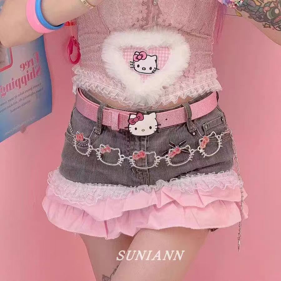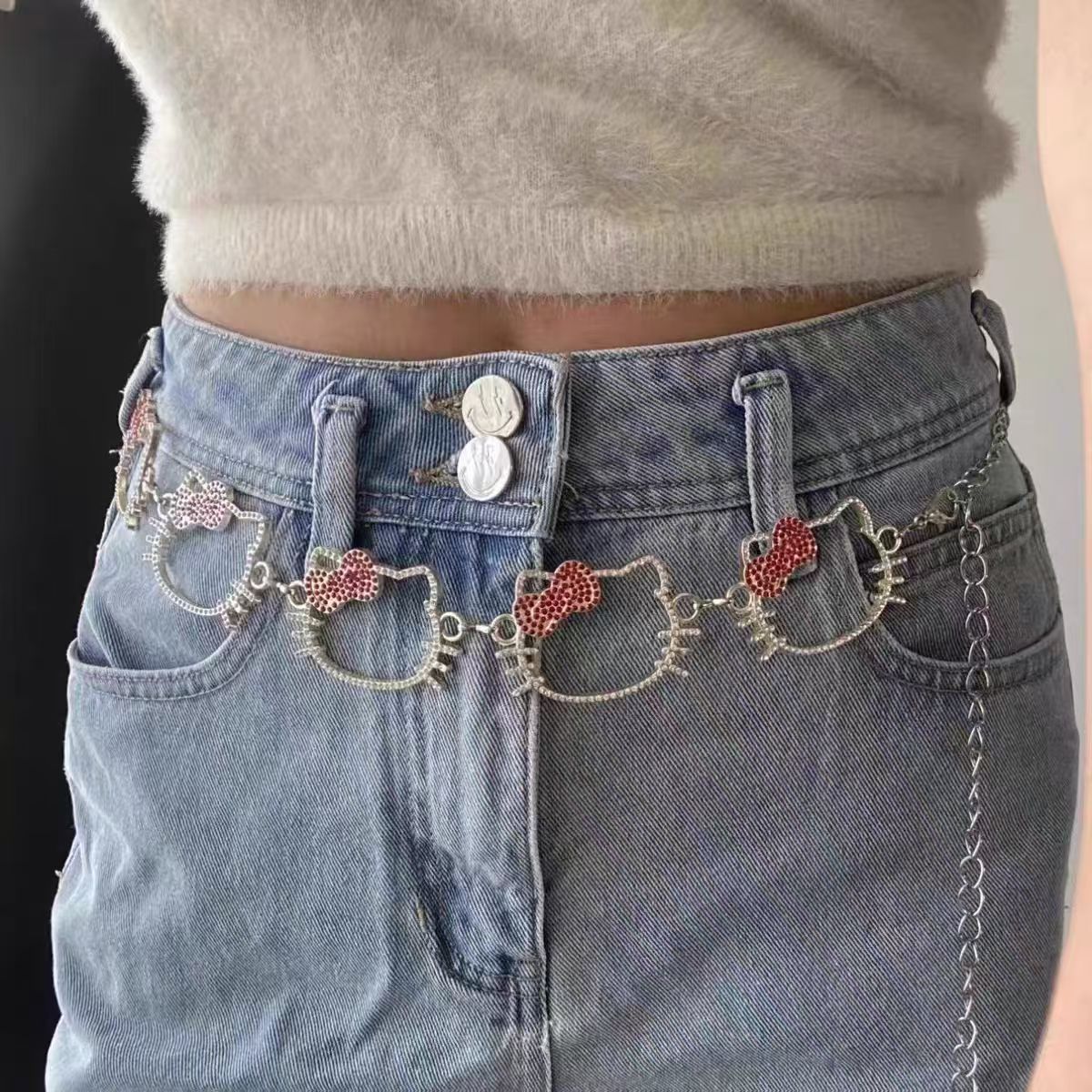 可爱闪钻kitty金属腰链甜美精致百搭配裙子高级感独特Y2K腰带女
