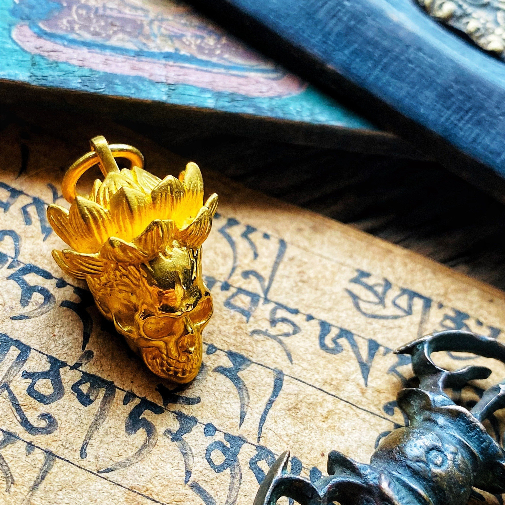 渡鸦工作室原创专属设计 阿赖耶识莲花骷髅吊坠三通顶珠925银手工