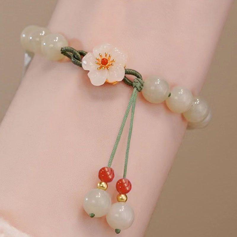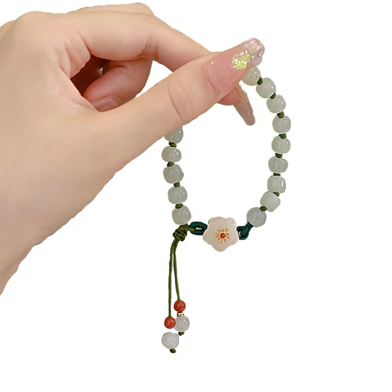 和田玉花朵花花串珠手链女ins小众设计彩色闺蜜古风手饰学生手串