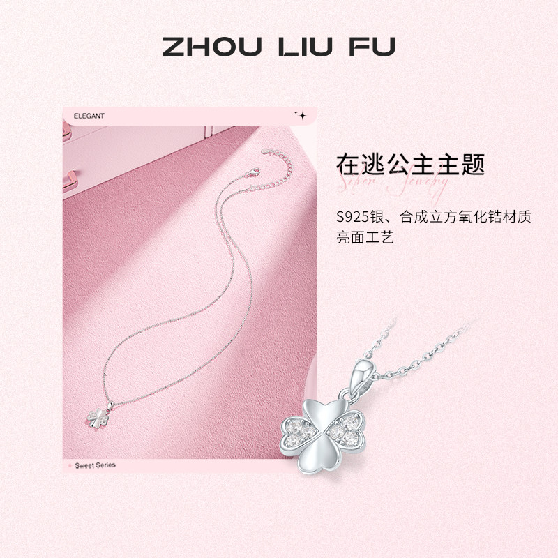 周六福项链女四叶草链坠S925银高级感轻奢小众送女友圣诞礼物