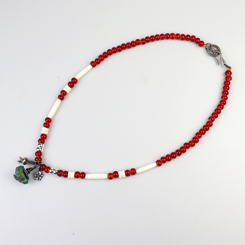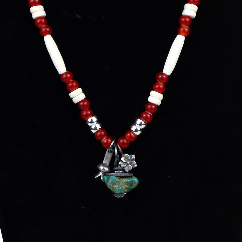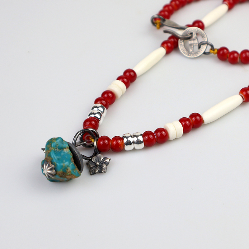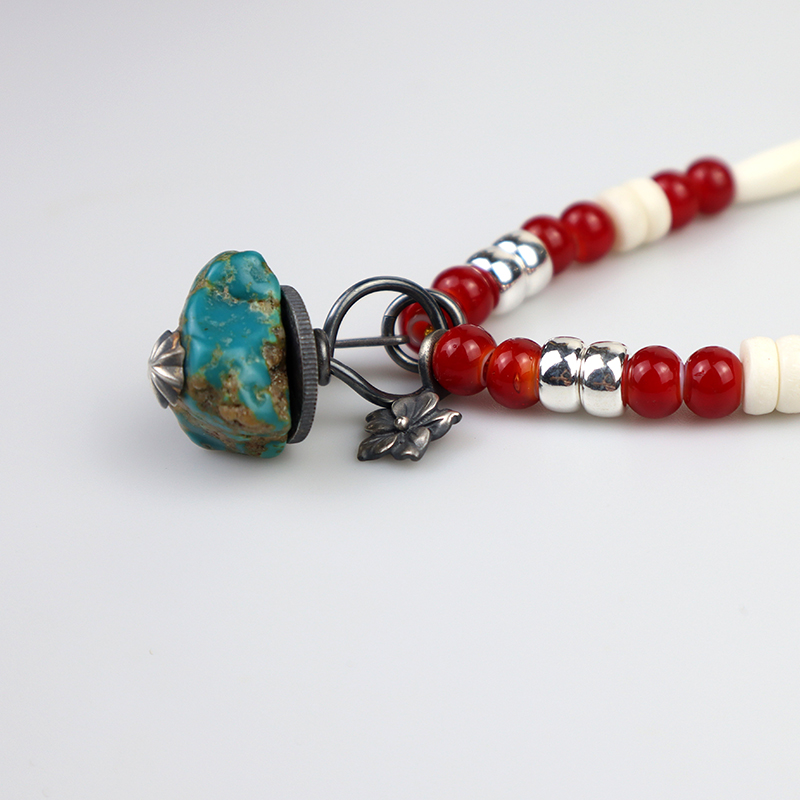原创设计手工银饰原矿松石吊坠印第安925纯银石榴花琉璃珠项链