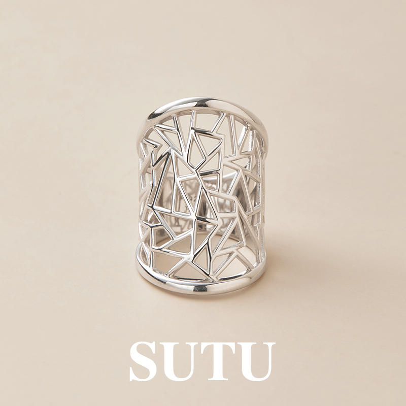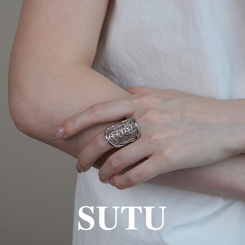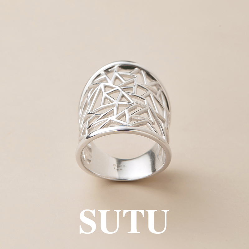素图镂空窗花戒指925银时尚个性小众设计食指戒精致百搭高级指环