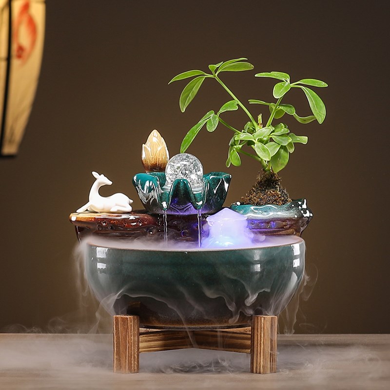 鱼缸流水瀑布招财循环陶瓷家w居客厅喷泉造景办公家用装饰乔迁摆