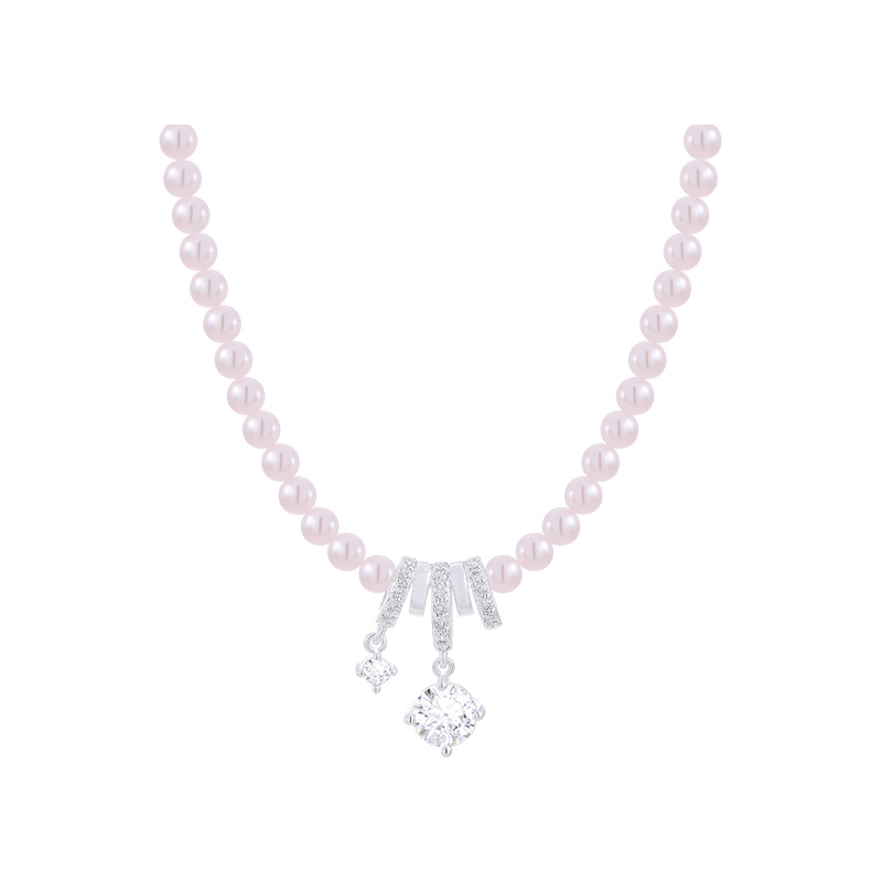 银色多层圆环几何锆石吊坠珍珠项链女2025新款颈链轻奢小众锁骨链