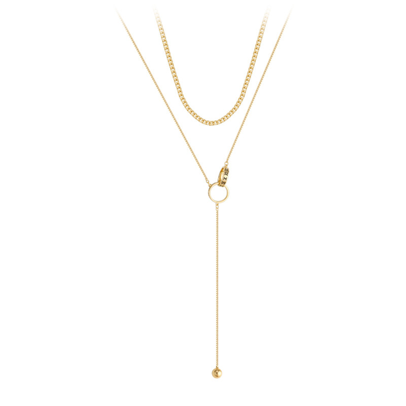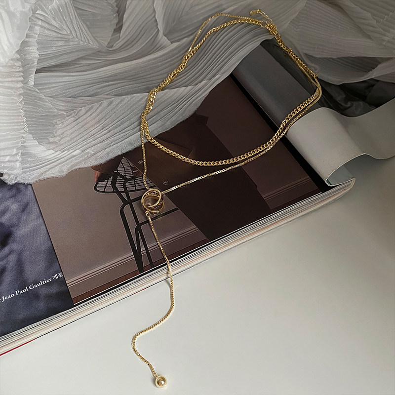 欧美长款双层叠戴项链女ins潮小众设计锁骨链轻奢高级感颈链配饰