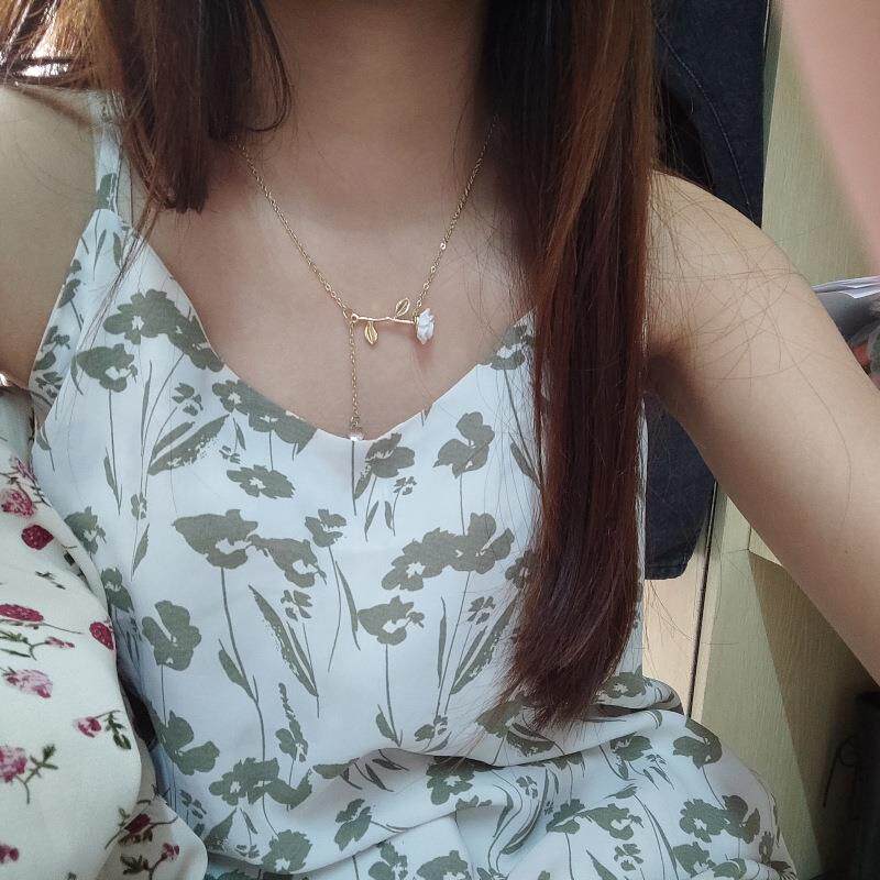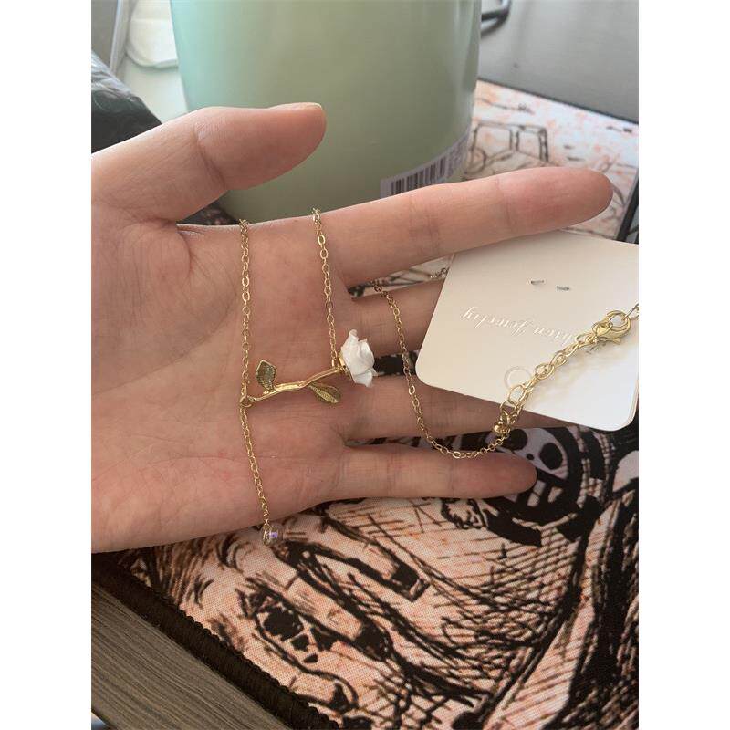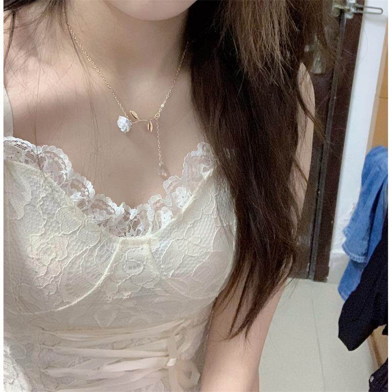 法式玫瑰花项链~超仙春季新款温柔水滴吊坠锁骨链白色小清新颈链