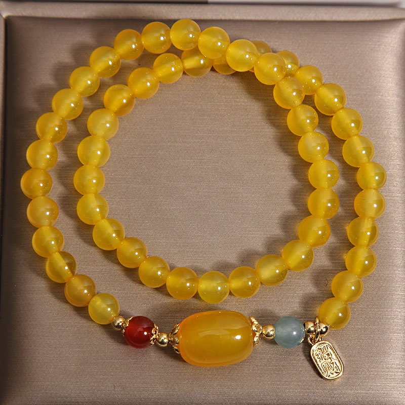 黄玛瑙双圈手串女新中式红玛瑙双圈叠戴手链轻奢小众精致礼物饰品