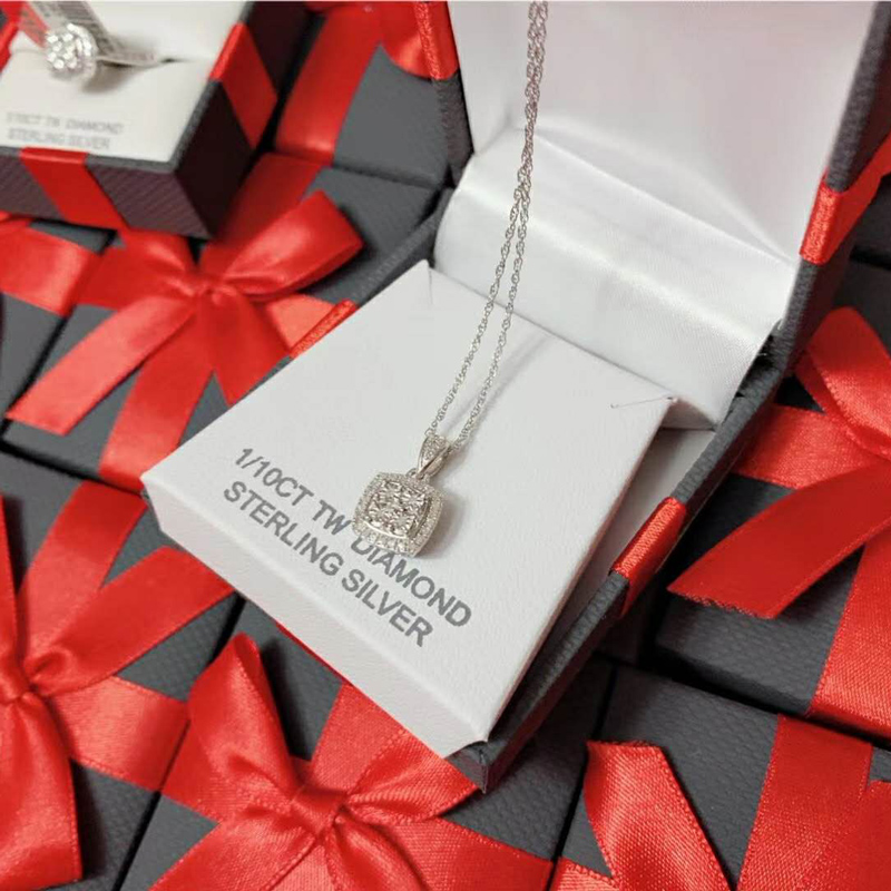 美国JC Penny方块女士真钻石0.1克拉钻石耳钉戒指项链 现货