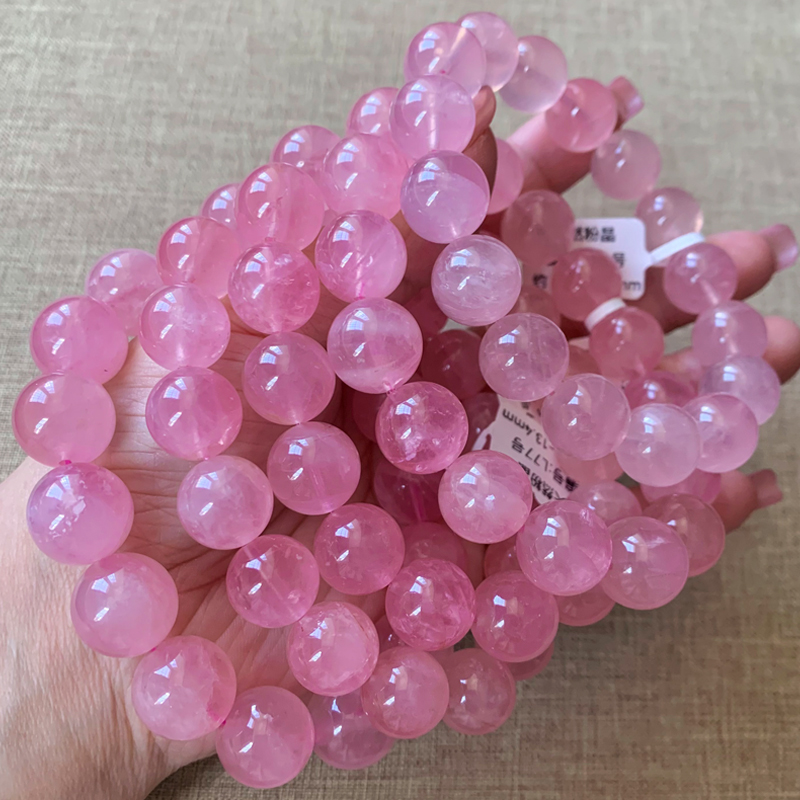 天然果冻体粉晶单圈水晶手链一物一图粉晶果冻体水晶手串礼物饰品