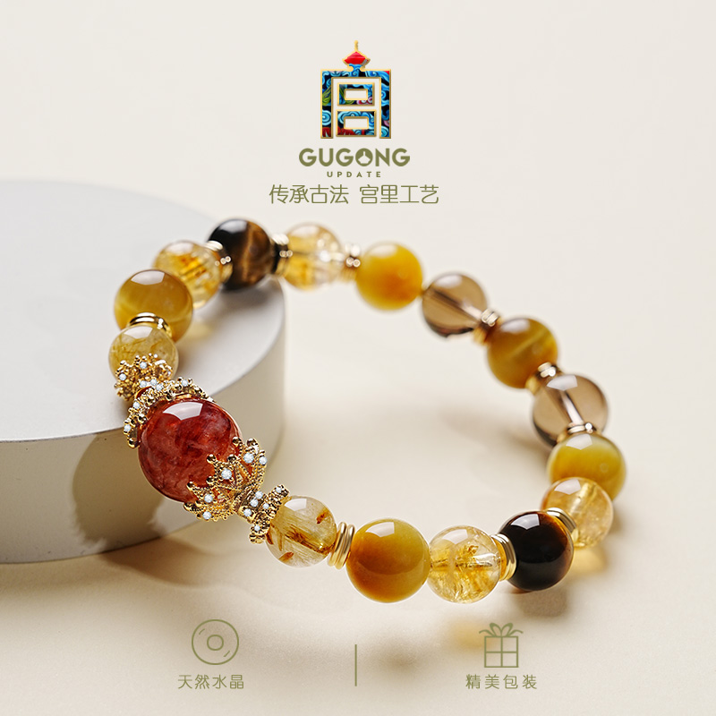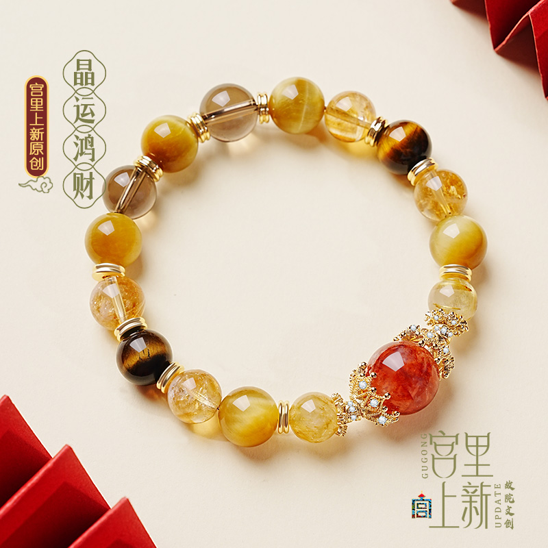 宫里上新黄水晶手链天然正品招财转运金发晶手串串珠女生生日礼物