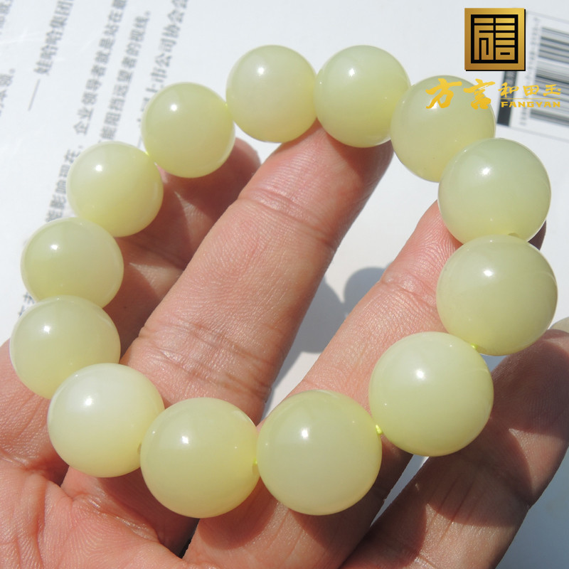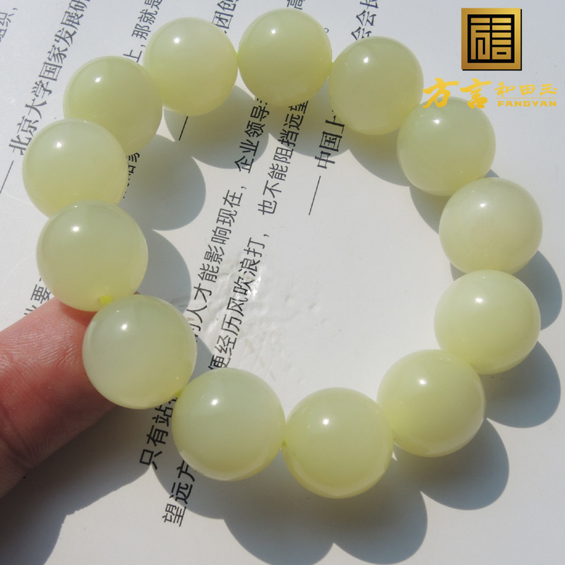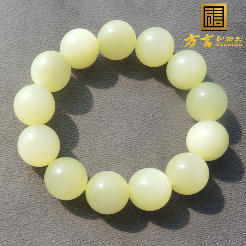 方言珍品鸡油黄色黄玉直径16mm珍稀珠宝级名品猫眼黄玉圆珠手链R