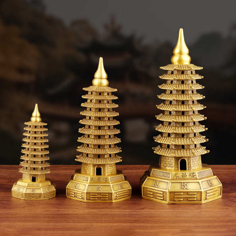 文昌塔旗舰店 八卦黄铜文昌塔摆件9层文峰塔宝塔送学生礼物装饰品
